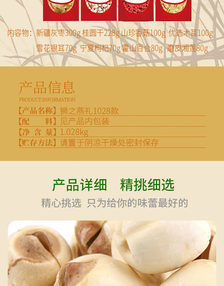 燕之坊 南北干货 狮之燕礼礼盒1.028kg 百合银耳香菇木耳灰枣送礼佳选