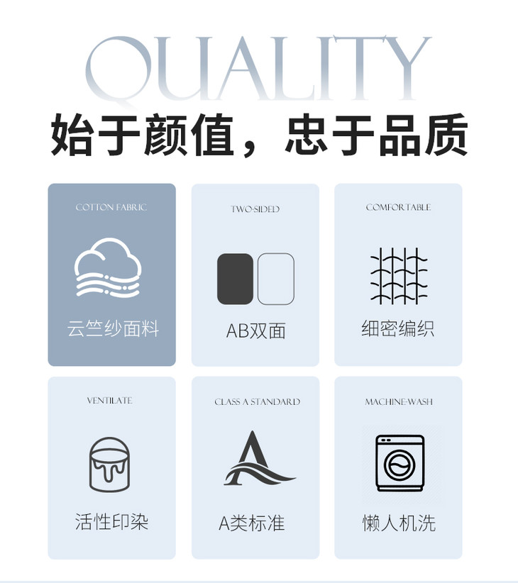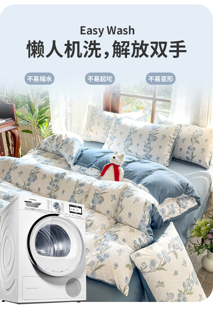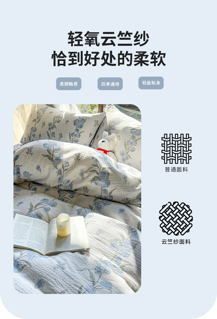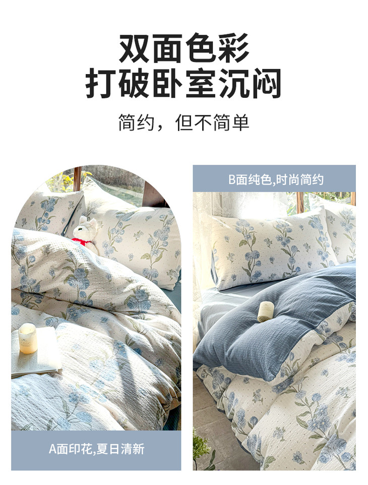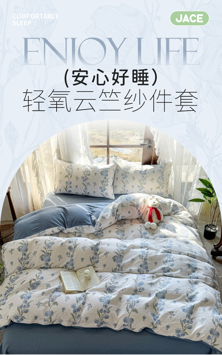JACE久适轻氧云竺纱件套-A类 柔顺触感轻盈安心好睡 治愈系花色AB双面 春夏居家床品三件套/四件套