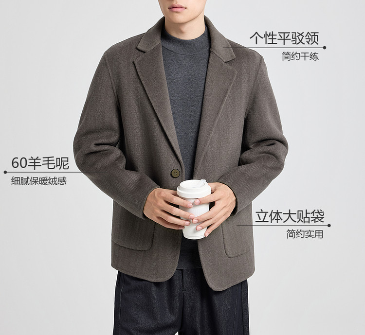 墨麦客男装2025年冬季新款双面羊毛呢西服外套男士单粒扣呢大衣男