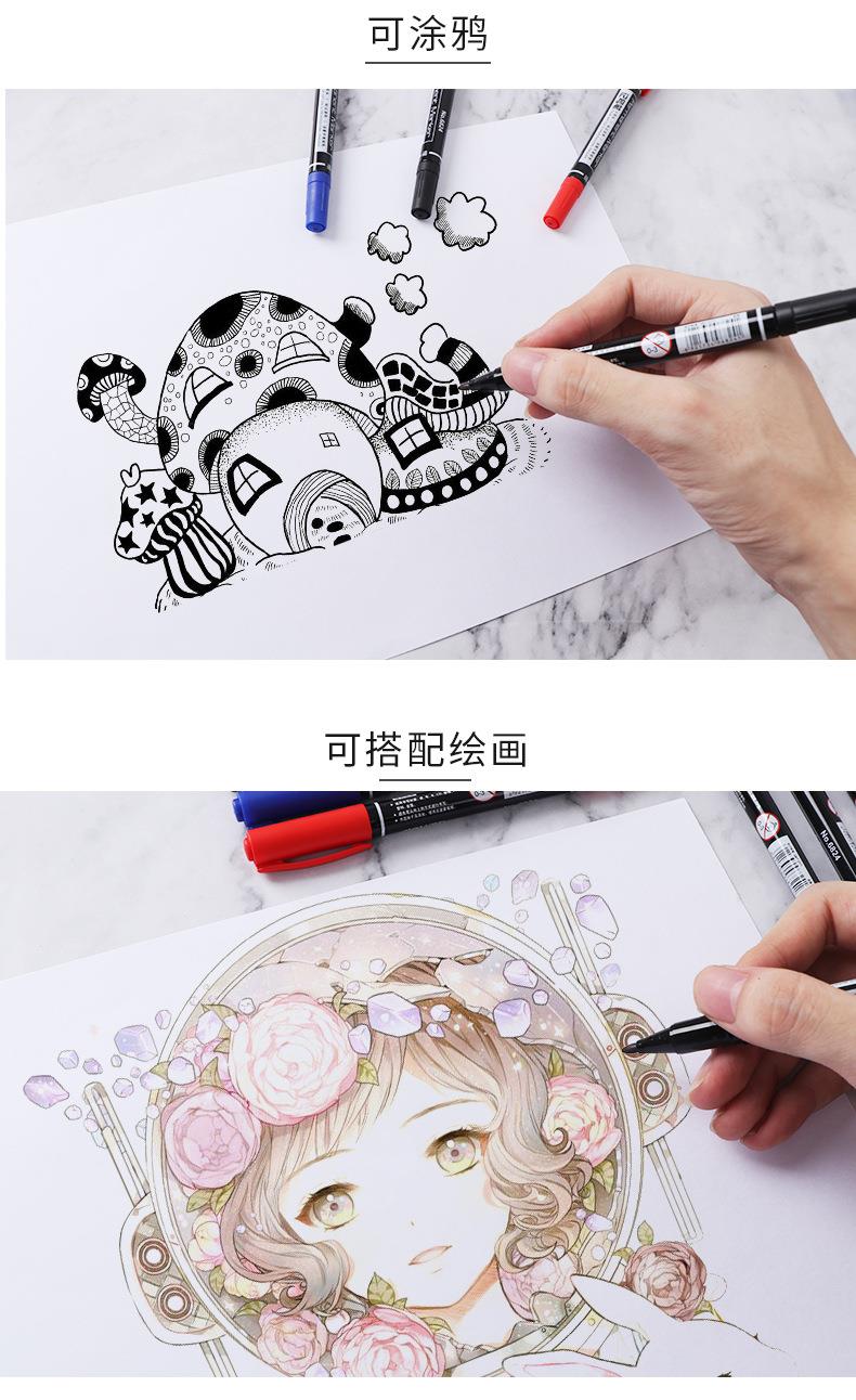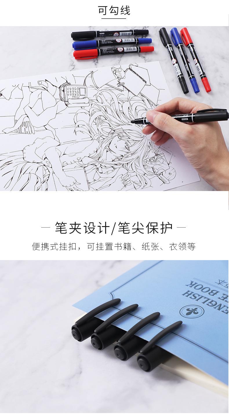 双头记号笔勾线笔黑色美术专用儿童幼儿园油性大头笔