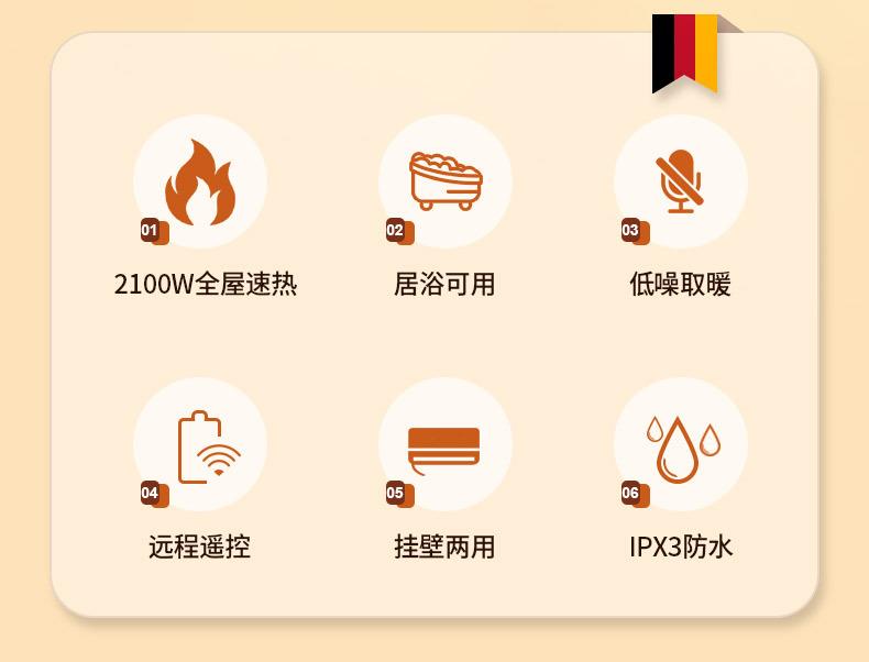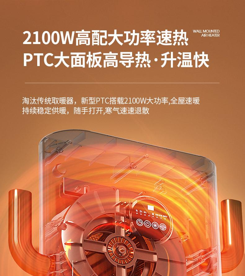 跨境新款家用暖风机壁挂式浴霸取暖器风暖大功率2100W欧规电暖器