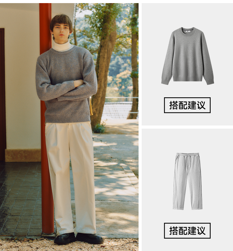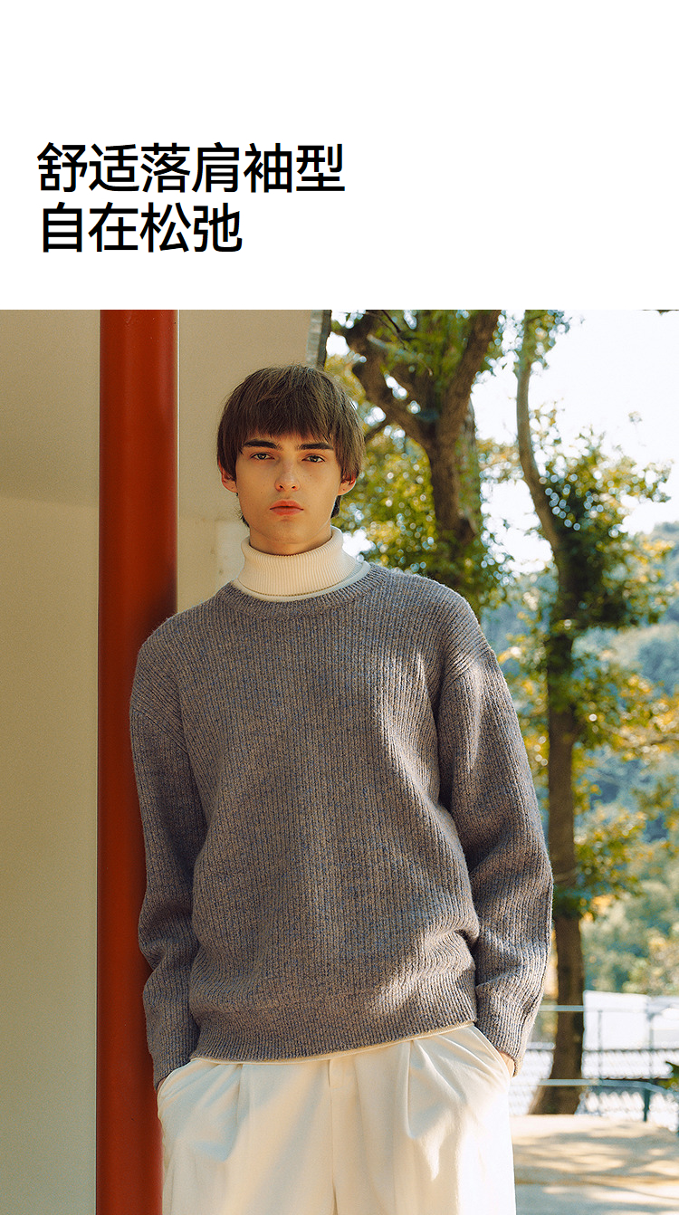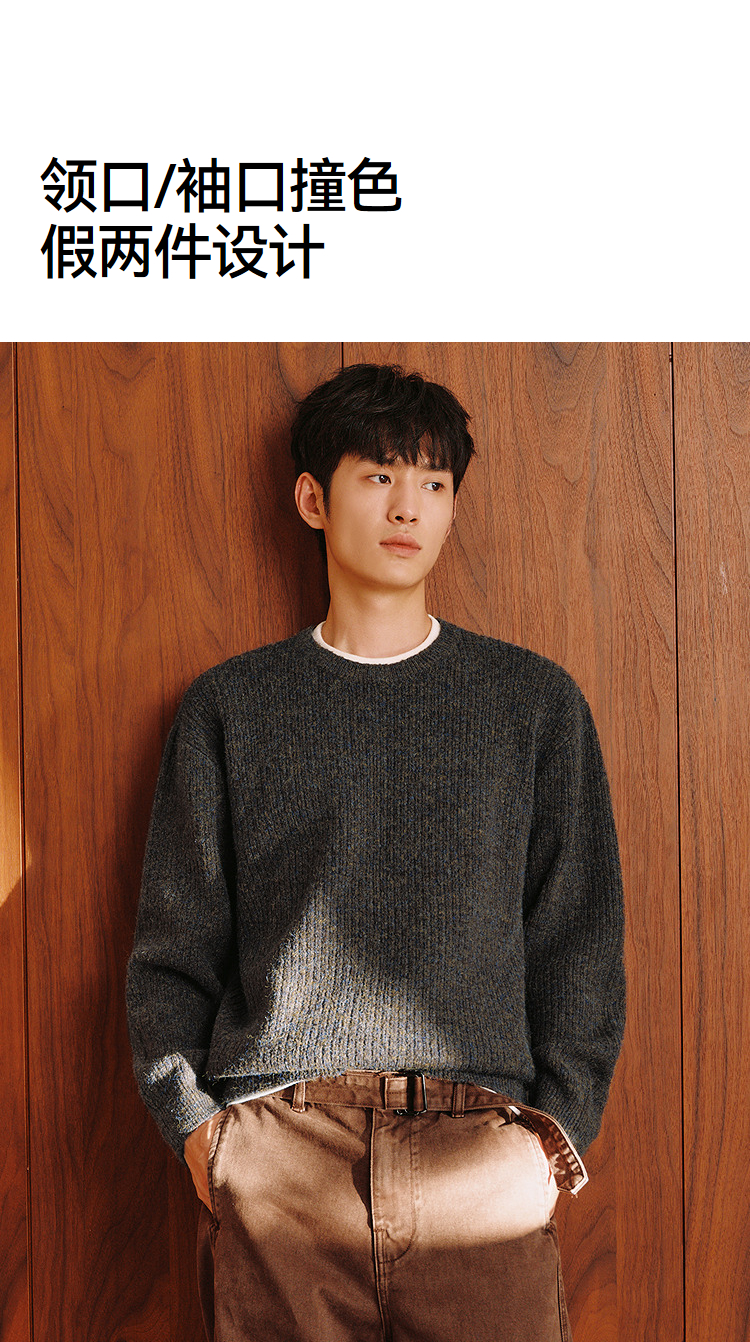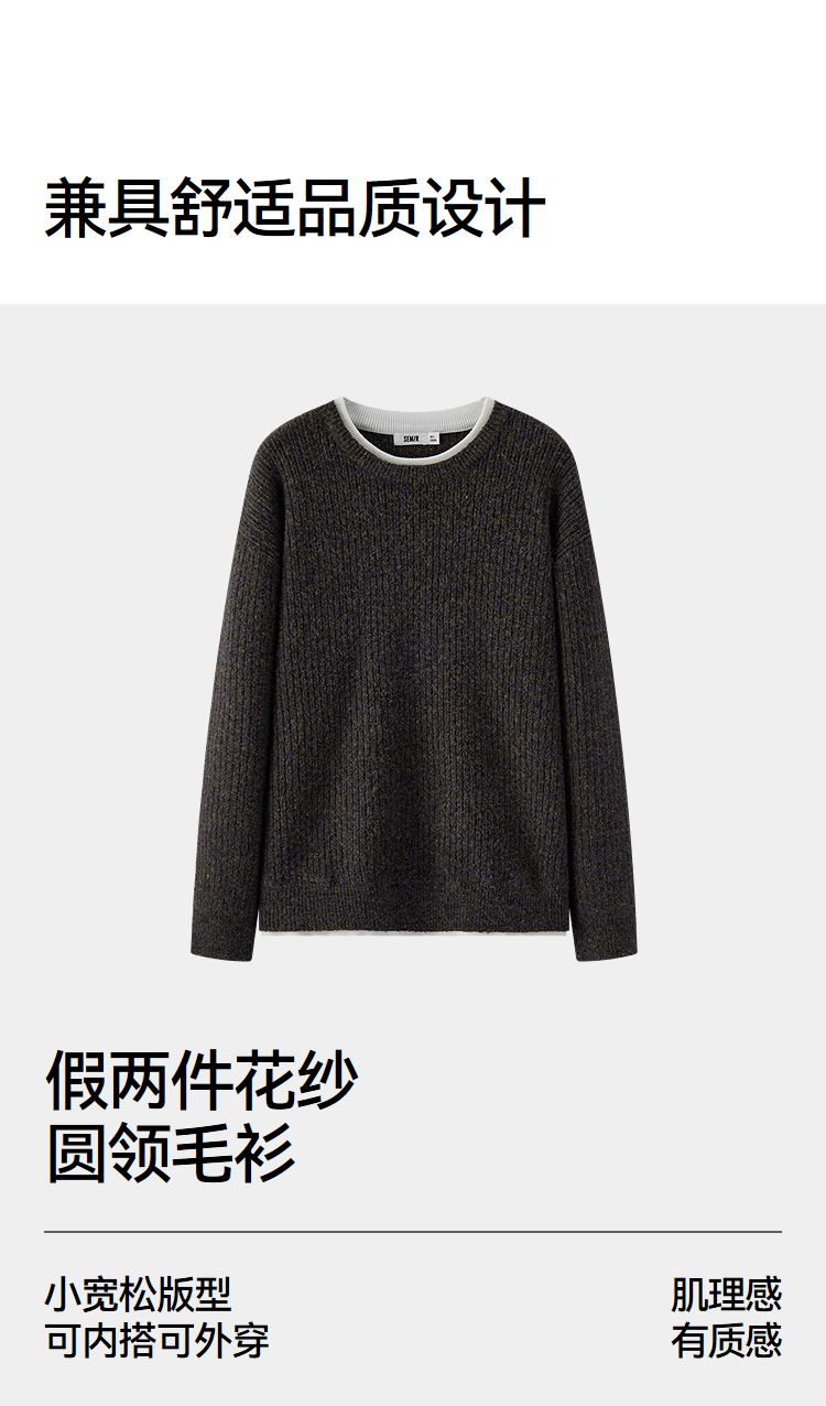 森马毛衫男冬假两件针织衫打底内搭2025新款花纱线衣时尚圆领毛衣