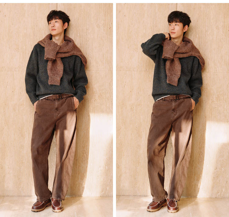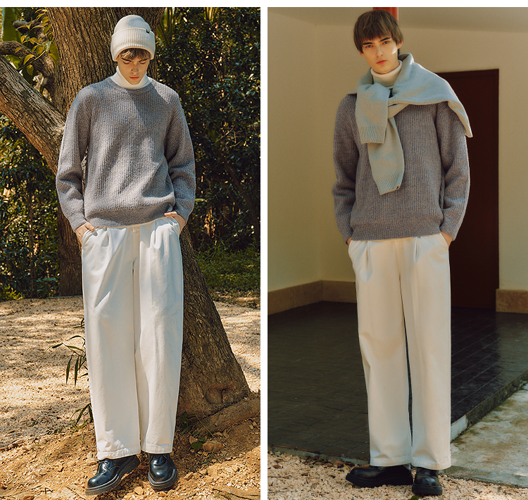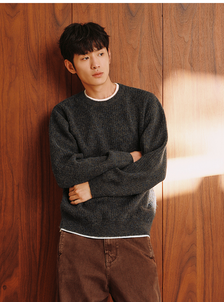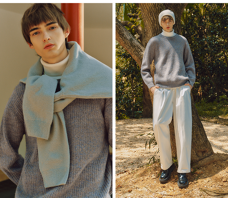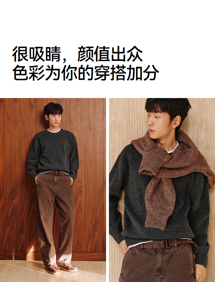 森马毛衫男冬假两件针织衫打底内搭2025新款花纱线衣时尚圆领毛衣