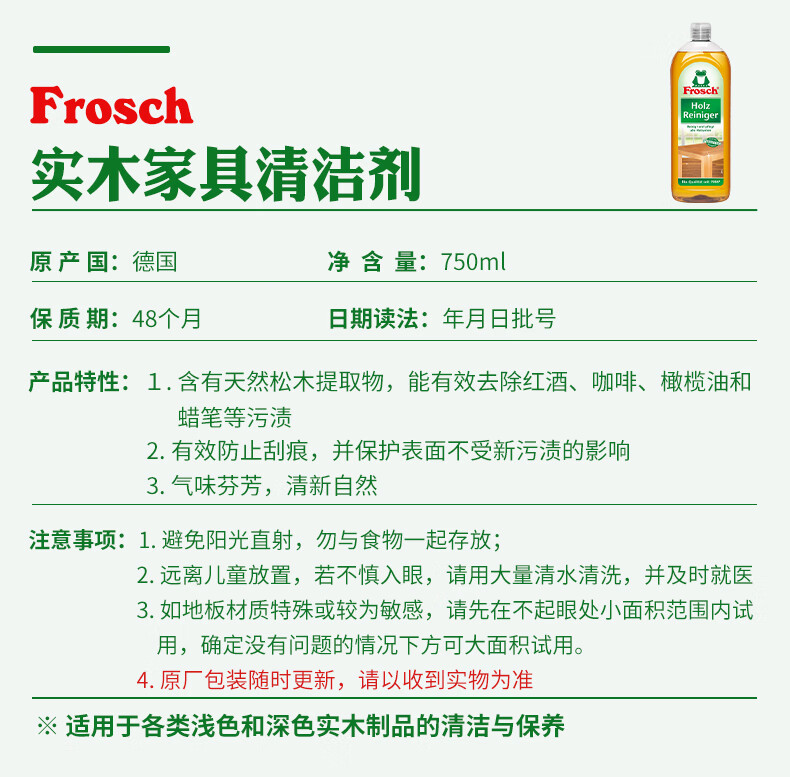 Frosch 实木家具清洁剂750ml