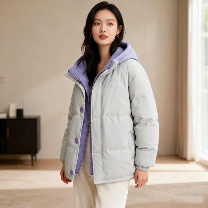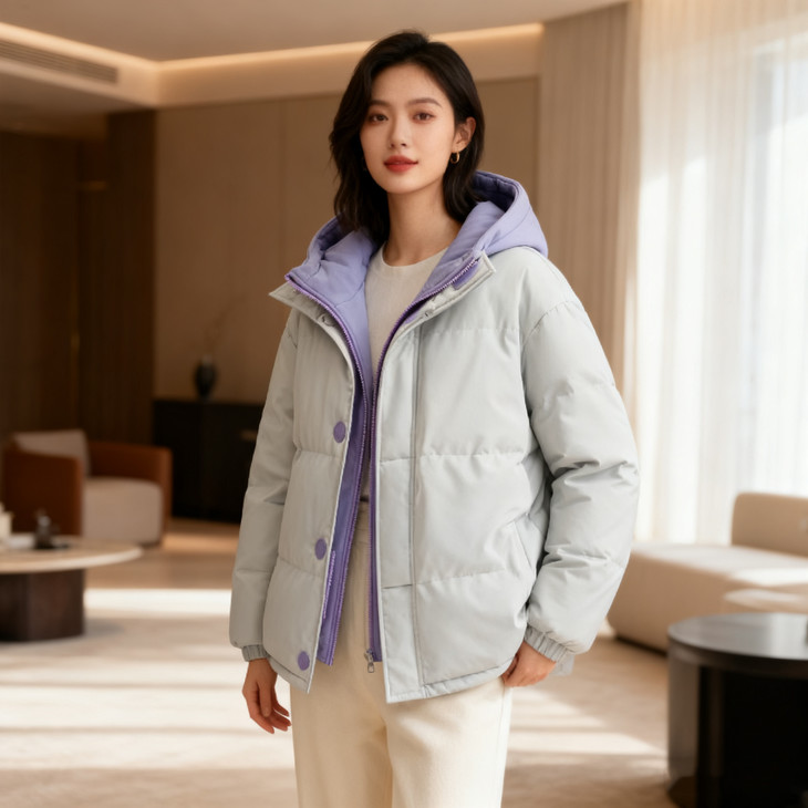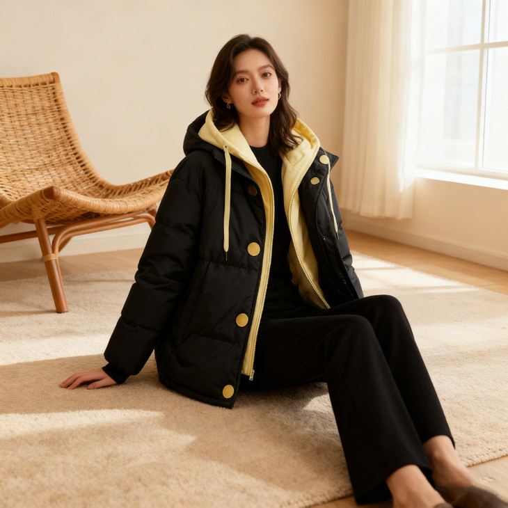 看看细节实拍!相当惊艳! 采用立领双面穿的设计, 又能防风保暖效果 两侧口袋,贴合实用又能温暖小手 做工真的是非常的细致 每一处都是尽心设计