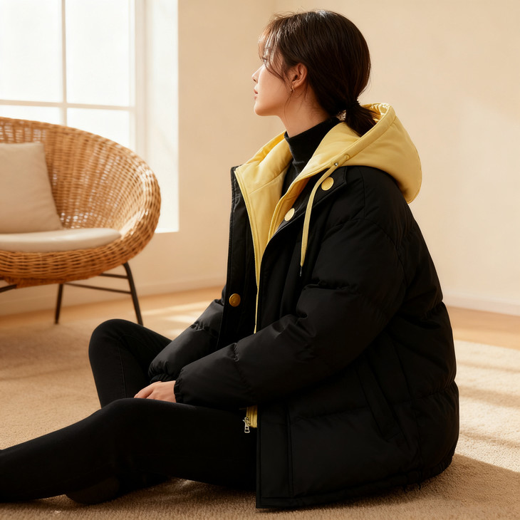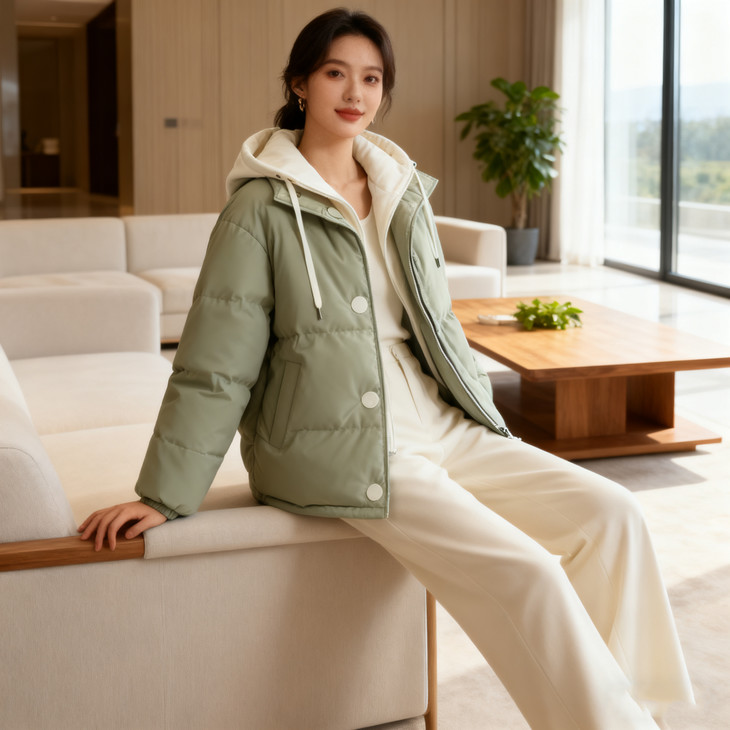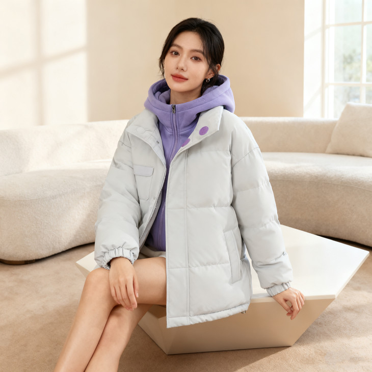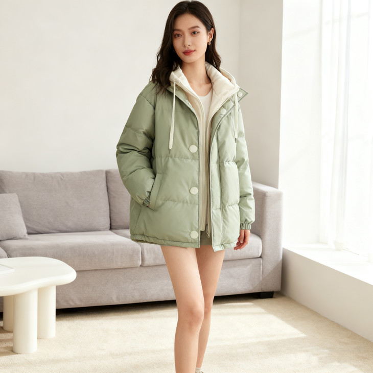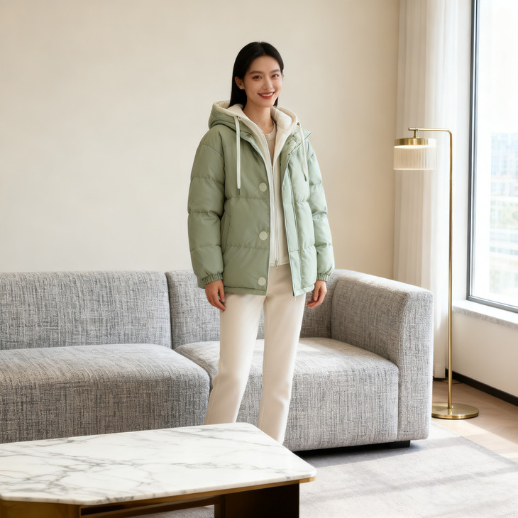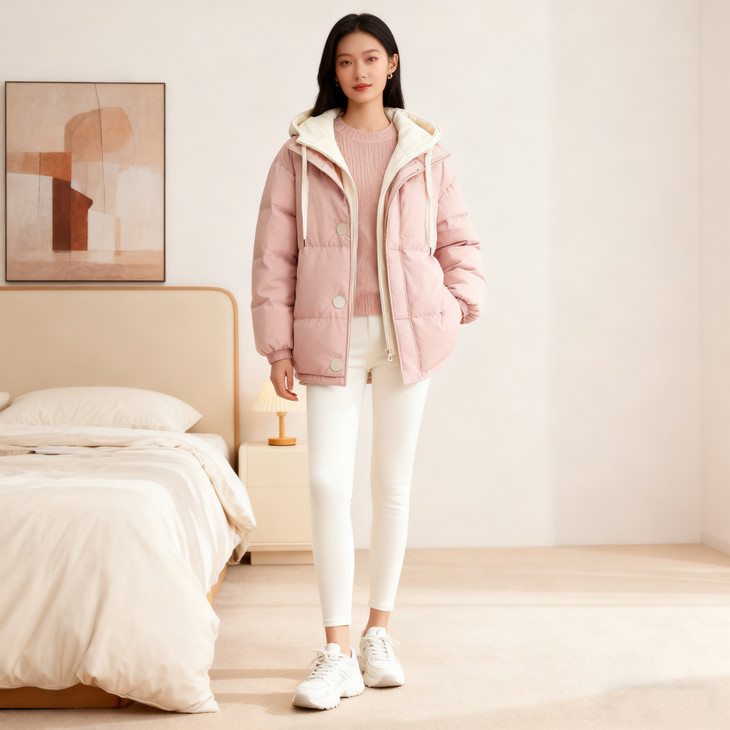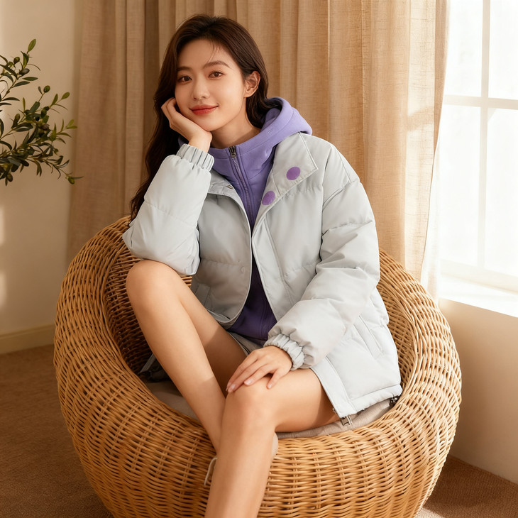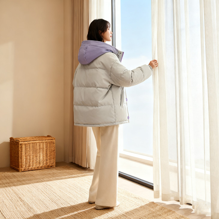 作为一件俘获一水心动的冬季棉服 它的✅厚度在线✅蓬松度在线! 内里填充是满满的纤维棉,纤细又柔和,保暖力MAX😍 也是市场上大家认准的可替代羽绒和植物棉作为服装填充物的保暖材料🉑 填充出来的外套轻盈蓬松回弹性很好🙌 用手按压下去,衣服还会慢慢的膨起来~