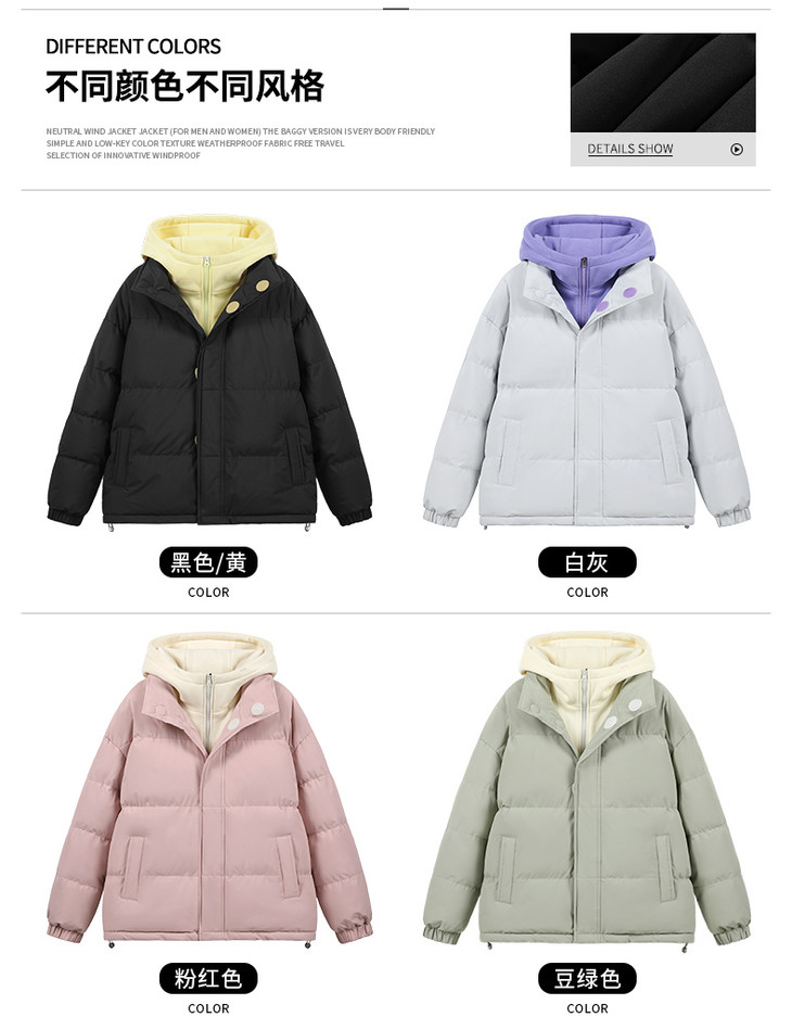 一步帮你解決双重问题, 寒冷的冬天就靠这样一件又时髦又暖和的棉服来拯救啦💫 设计款假两件的连帽版型 不受身材的限制蓬松的羽绒棉保暖御寒 充棉度妥妥的但不会显臃肿 不管你是胖子还是小个子美女 都能轻松驾驭在冬日带来别具一格的温暖格调 让你在冬日里做不一样的暖冬女孩~~ 6色可选✅男女同款‼️