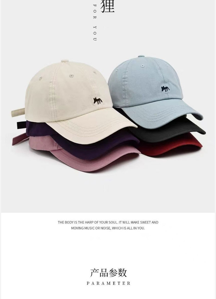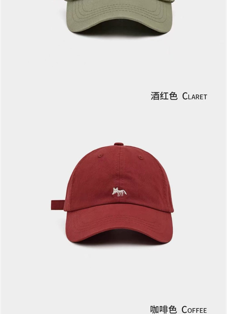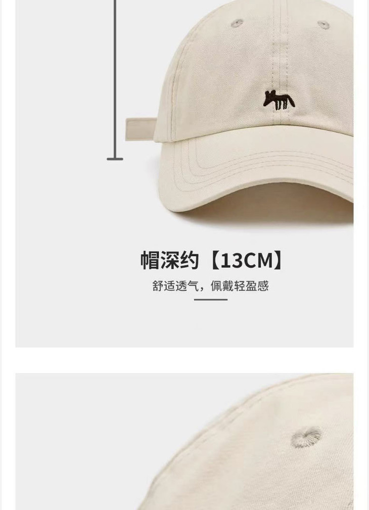 【男女宽檐显脸小遮阳鸭舌帽子】韩版刺绣狐狸棒球棉质帽子