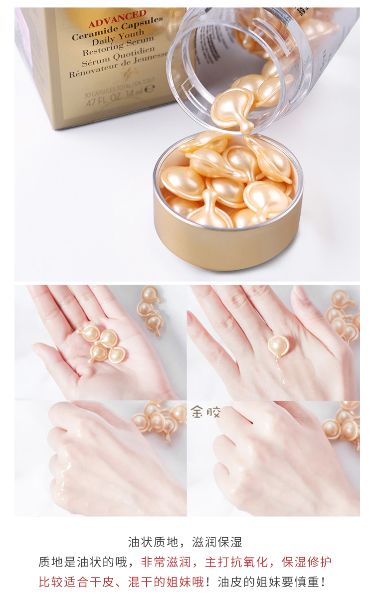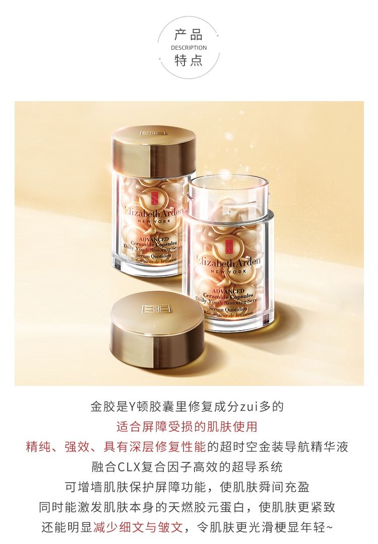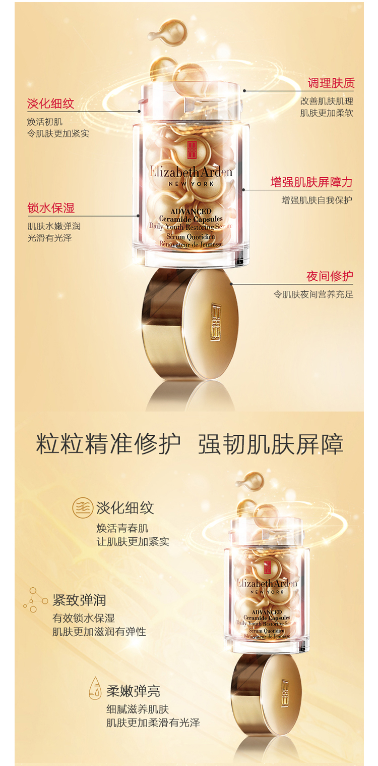 雅顿金胶时空焕活胶囊精华液神经酰胺面部精华淡化约30粒