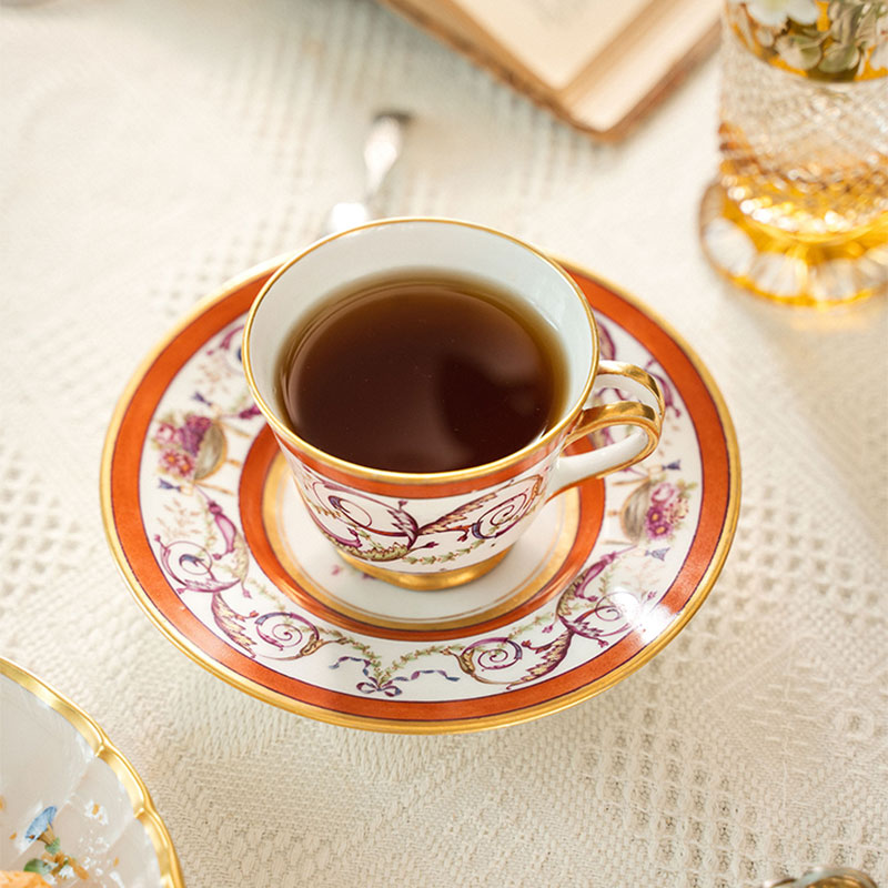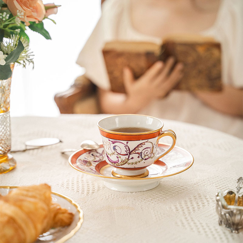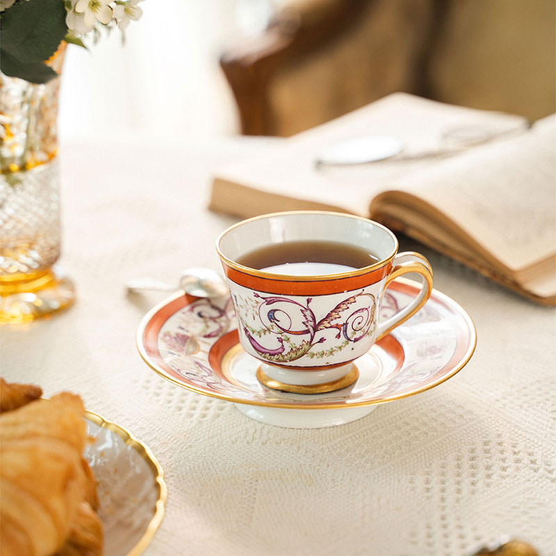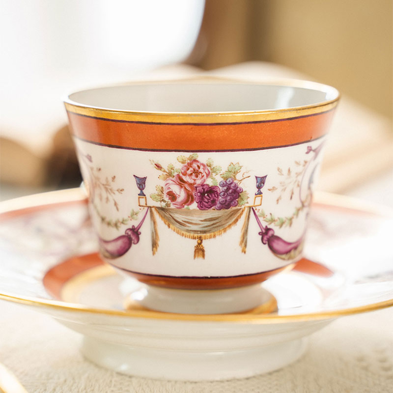 19世纪法国御窑出品东方风格花纹手绘描金装饰花卉主题咖啡杯碟一套