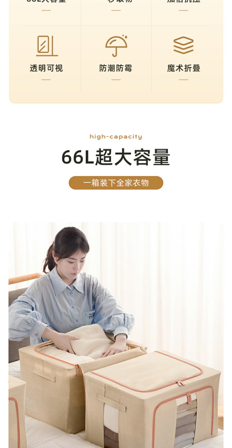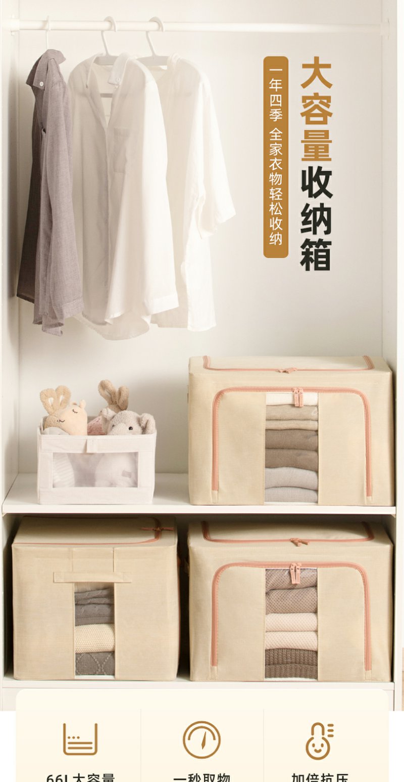 【茶花】布艺收纳箱可水洗棉麻被子羽绒服收纳箱换季收纳