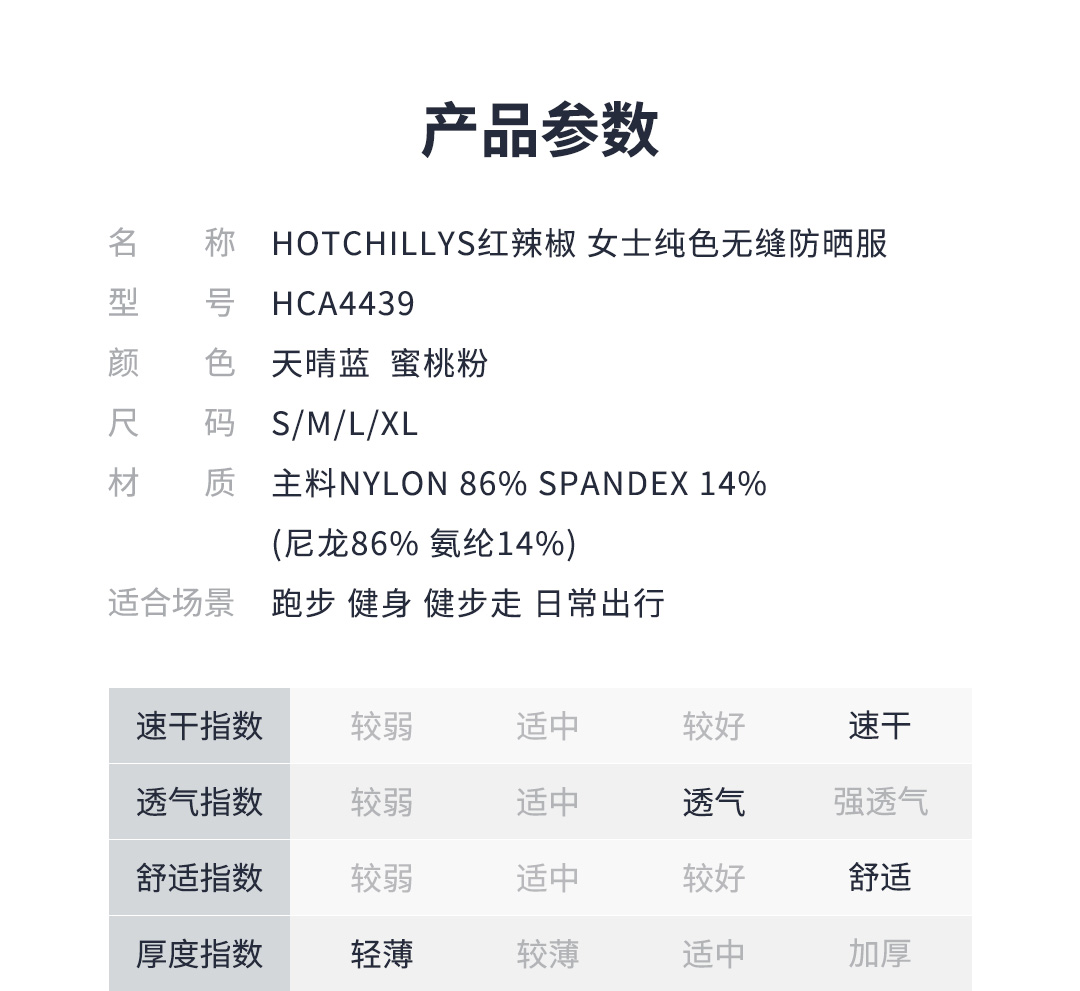 【618提前购】HOTCHILLYS热椒夏天女防晒衣服户外运动透气速干轻薄UPF40+防晒4439/4443