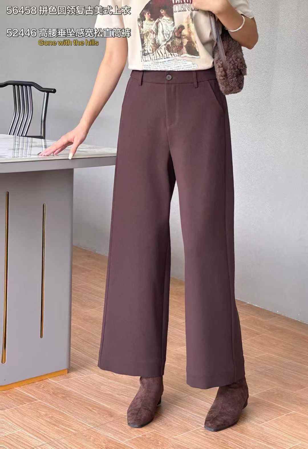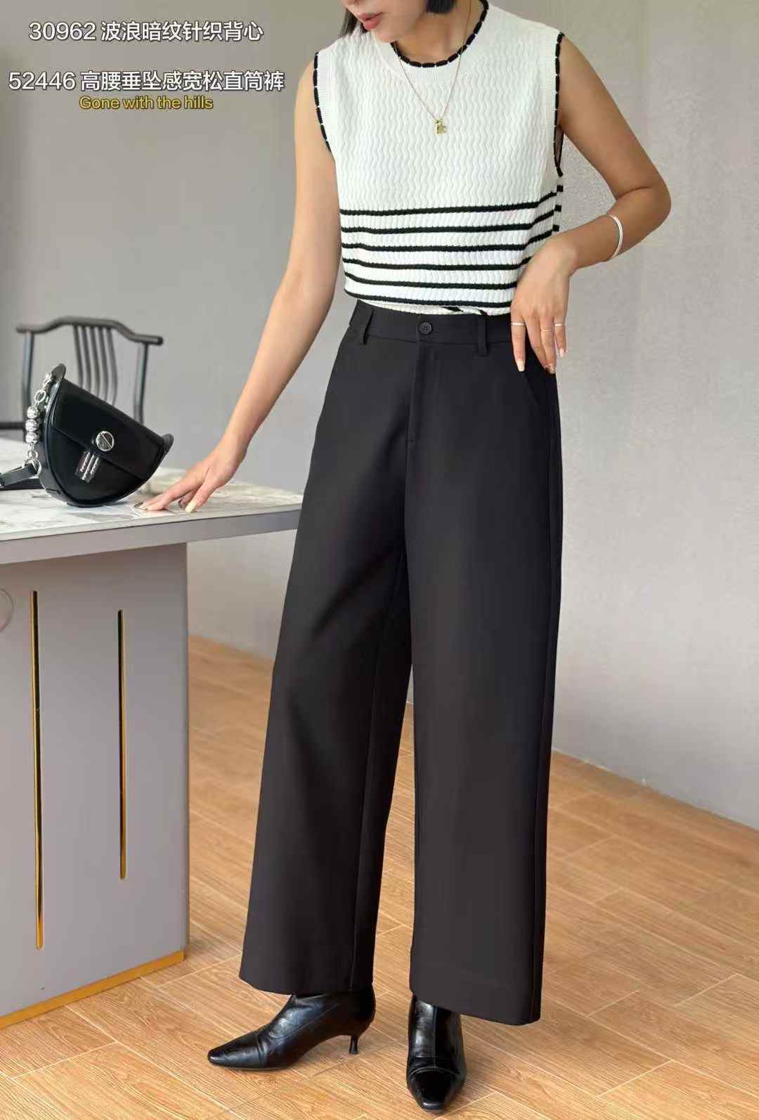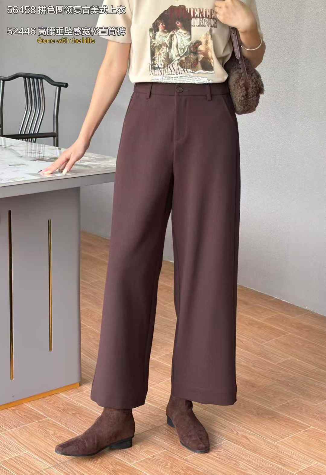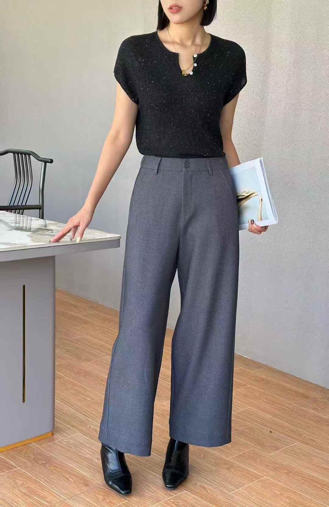 Z52446#遮肚显高身型垂坠感直筒裤