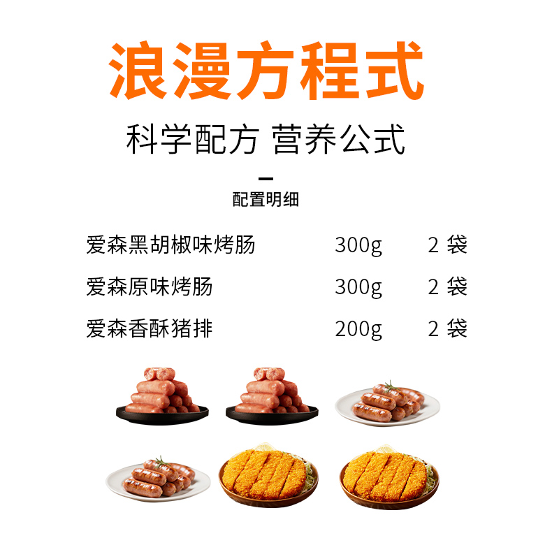 爱森套餐7(爱森黑胡椒味烤肠300g*2+爱森原味烤肠300g*2+爱森香酥猪排20g*2)