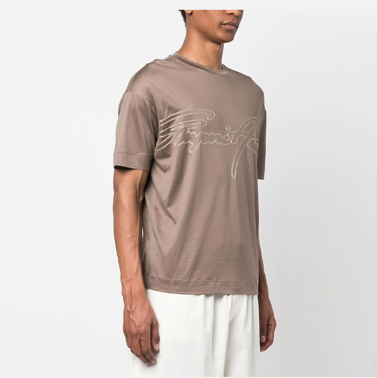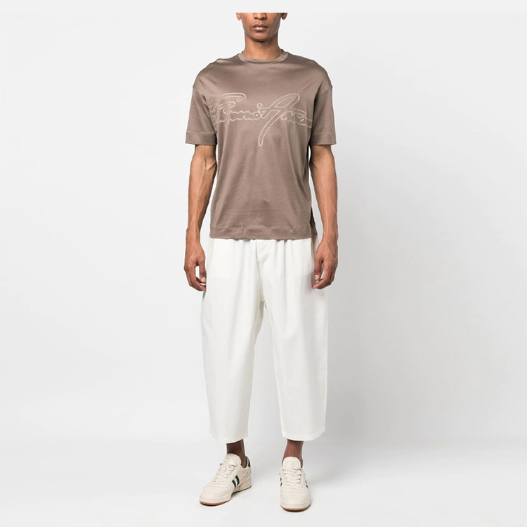 EMPORIO ARMANI 阿玛尼 男士刺绣徽标圆领短袖T恤 卡其色 3R1TV2 1JUVZ 0440