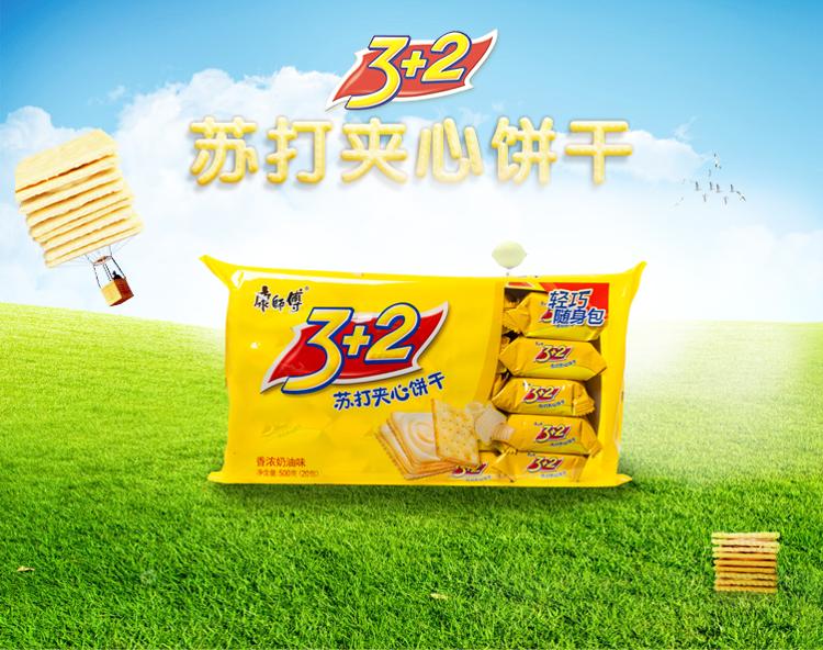 康师傅 3+2苏打夹心饼干蛋糕营养早餐办公室休闲零食小吃香浓奶油500g
