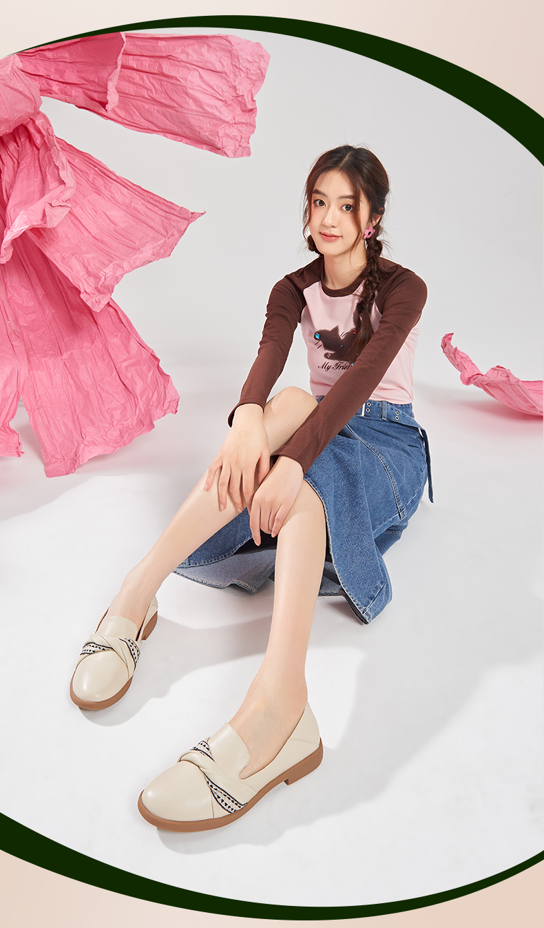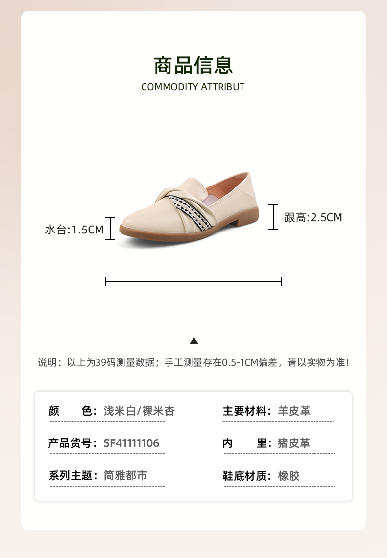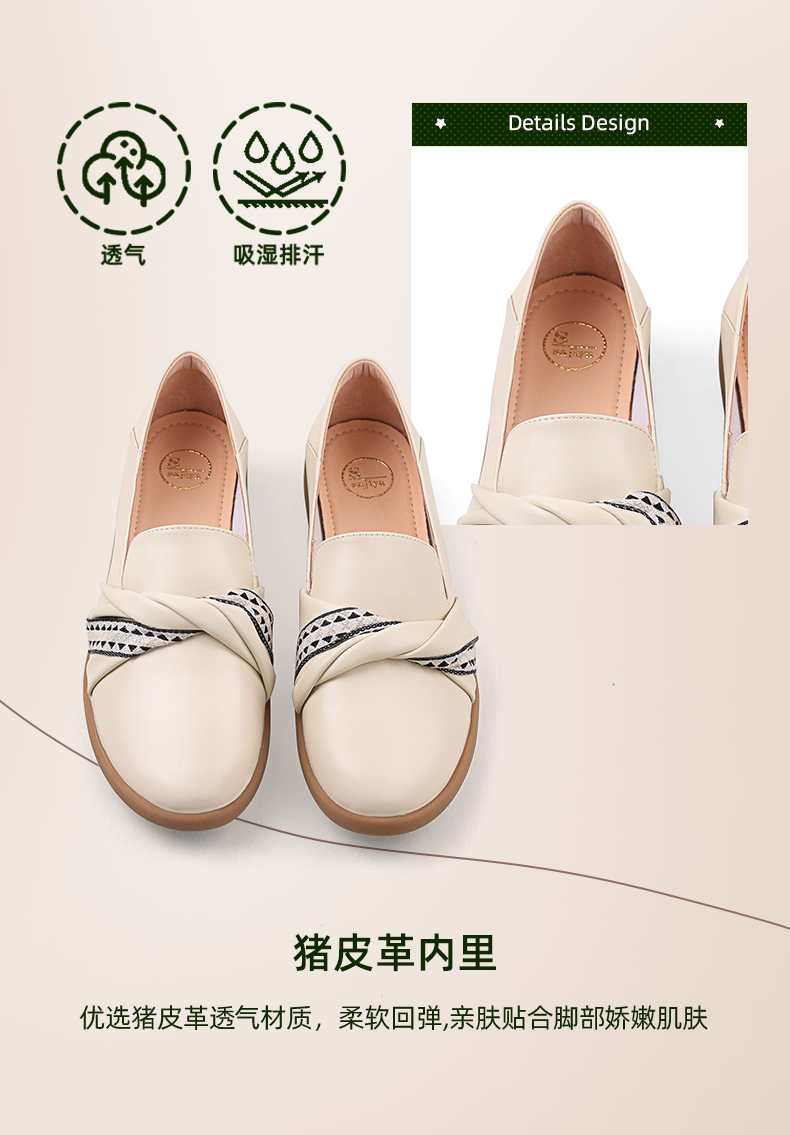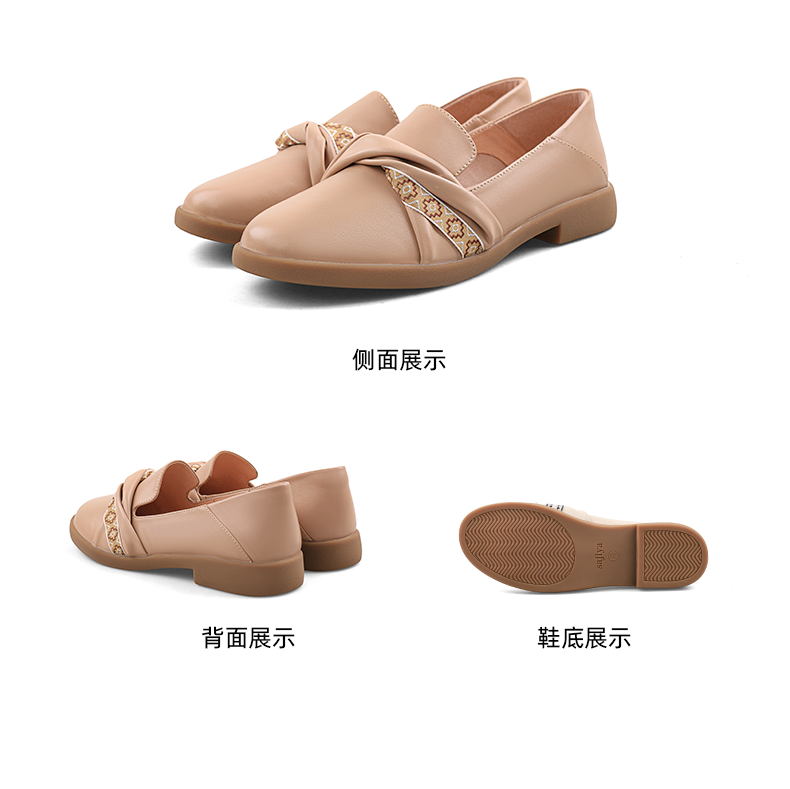 Safiya/索菲娅2024春季新品扭结淑女风真皮软底百搭浅口休闲单鞋 SF41111106