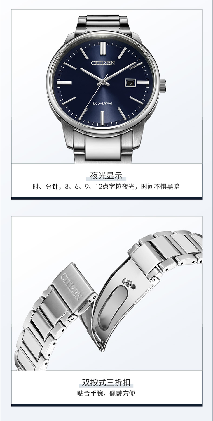 西铁城日本正品不锈钢时尚光动能 男表BM7521-85E(¥2,780φ39mm)