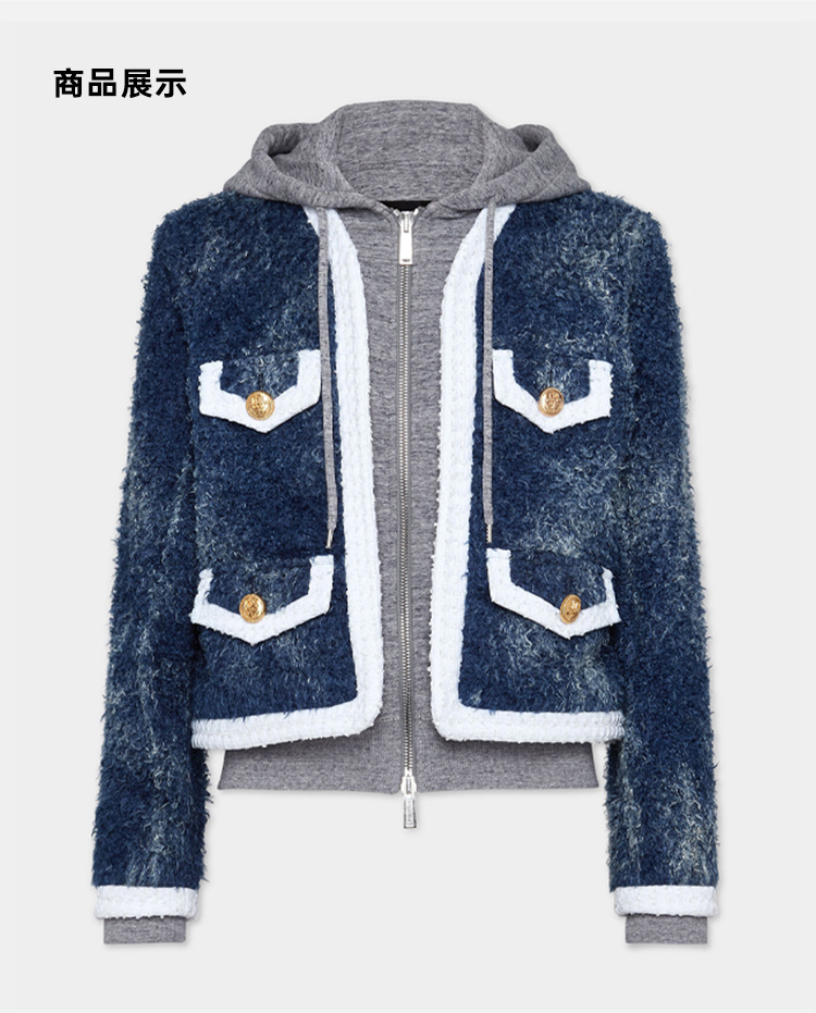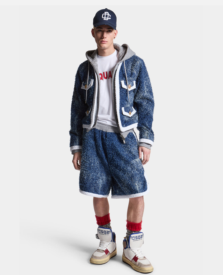DSQUARED2 男士牛仔毛皮连帽夹克外套 蓝色 S71AN0580 D30001 470
