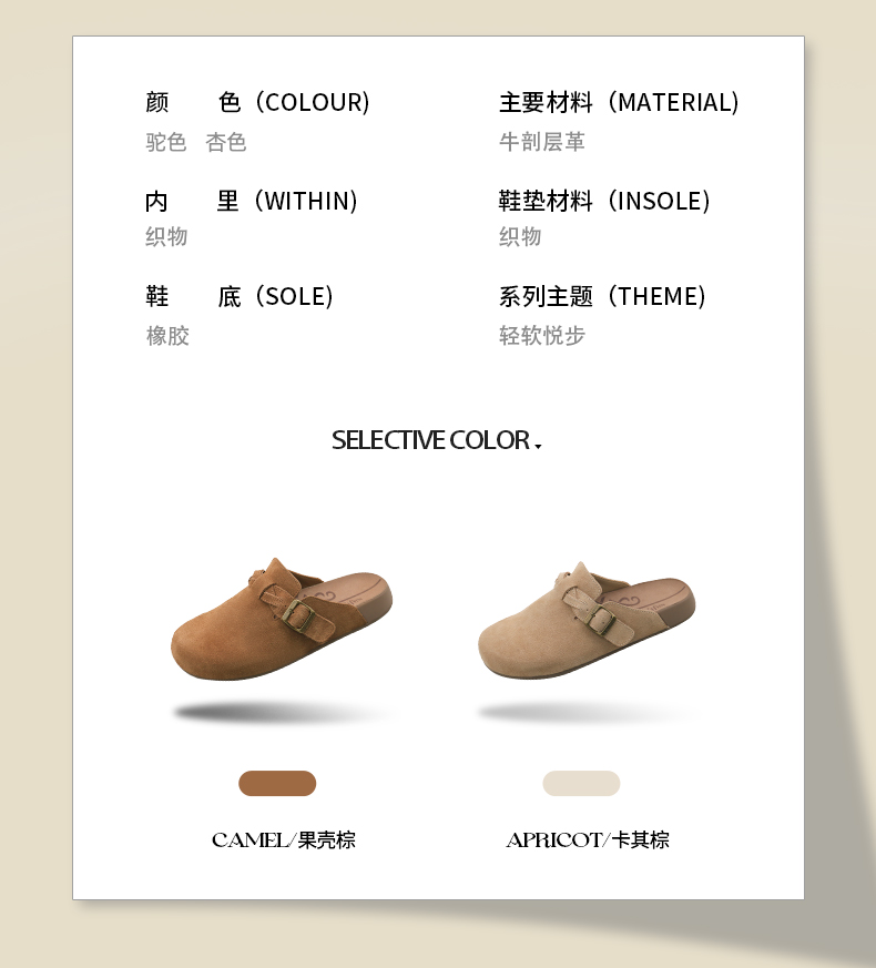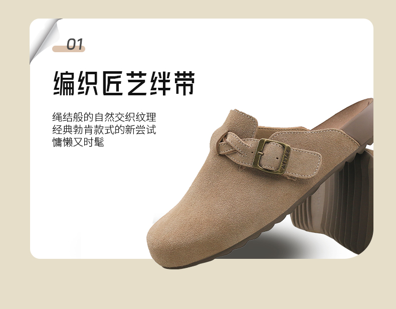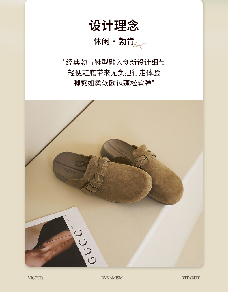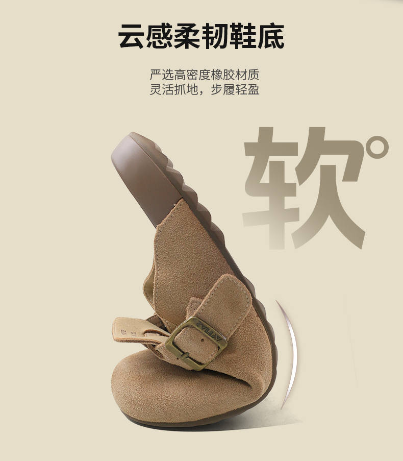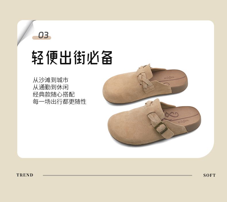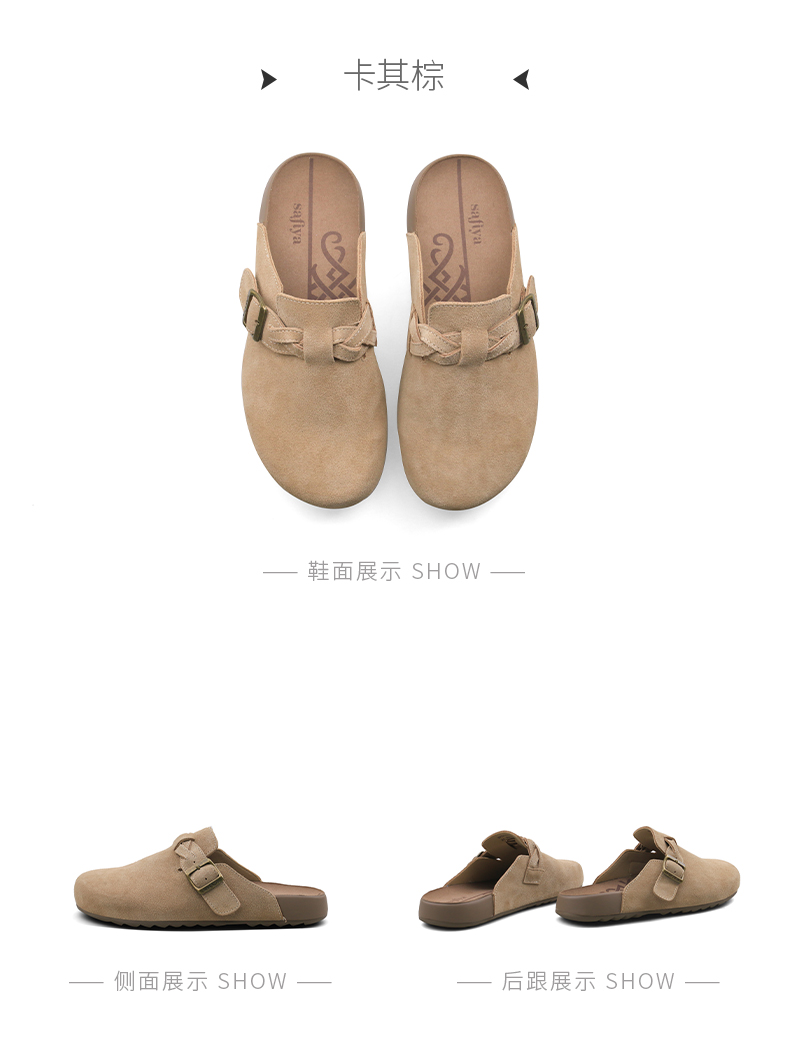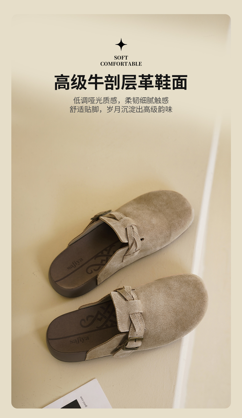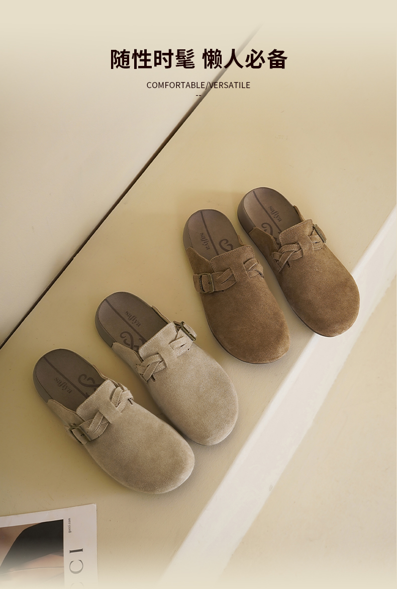 预售10天发|Safiya/索菲娅2025懒人鞋复古软底休闲外穿舒适勃肯凉拖SFD1110228
