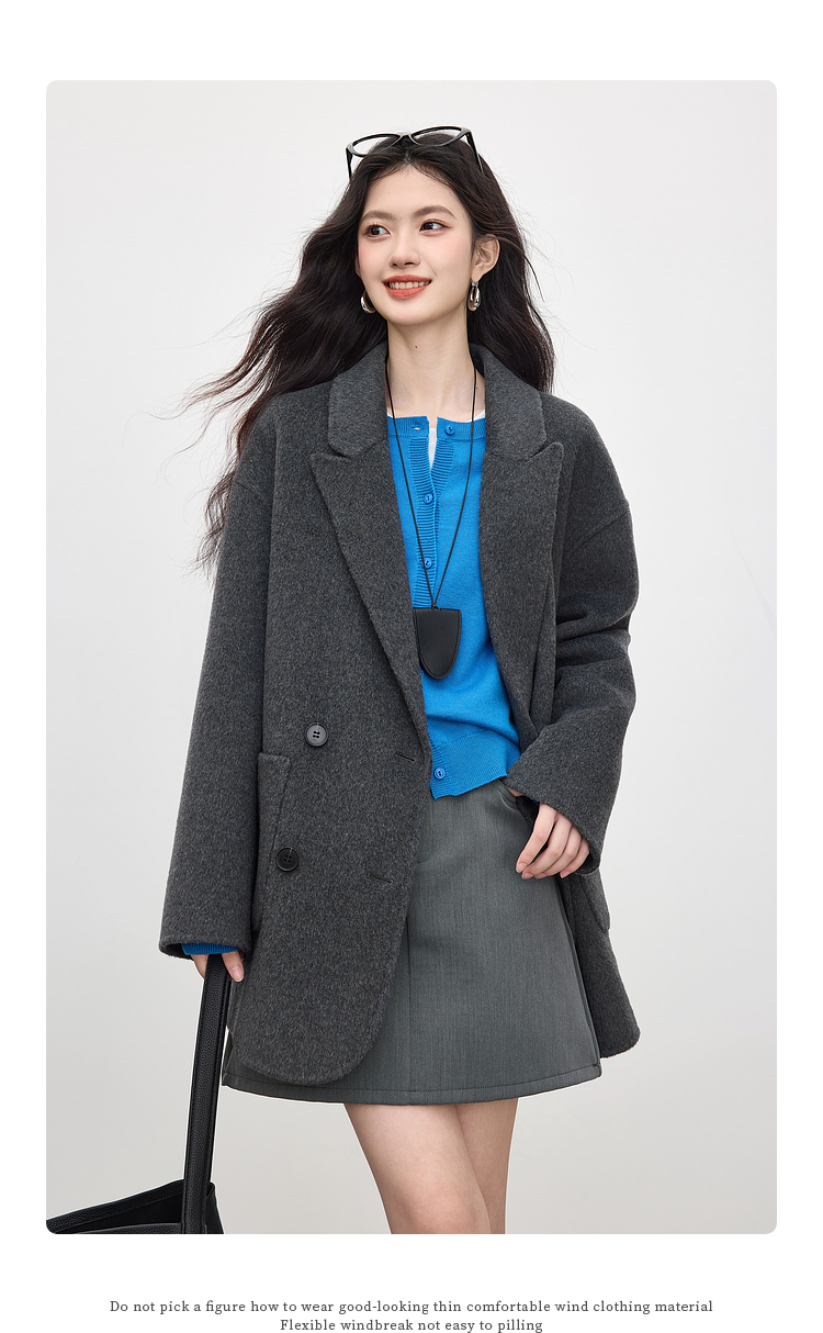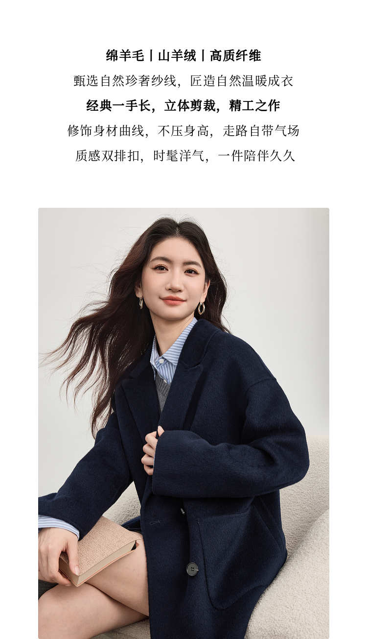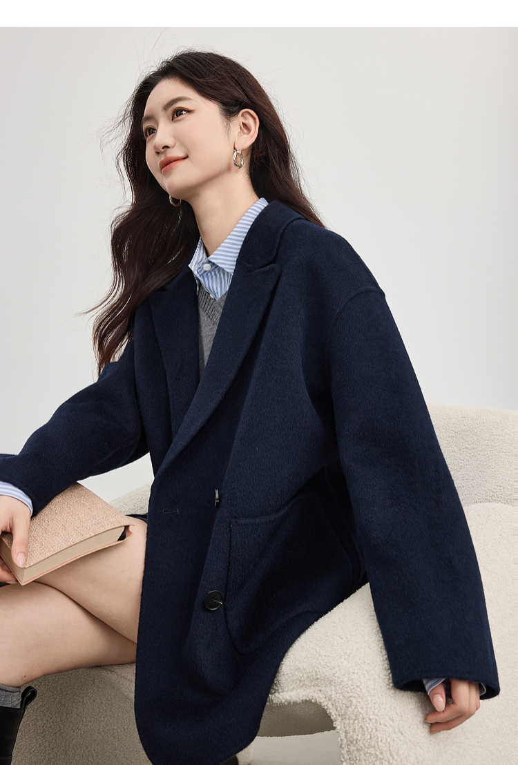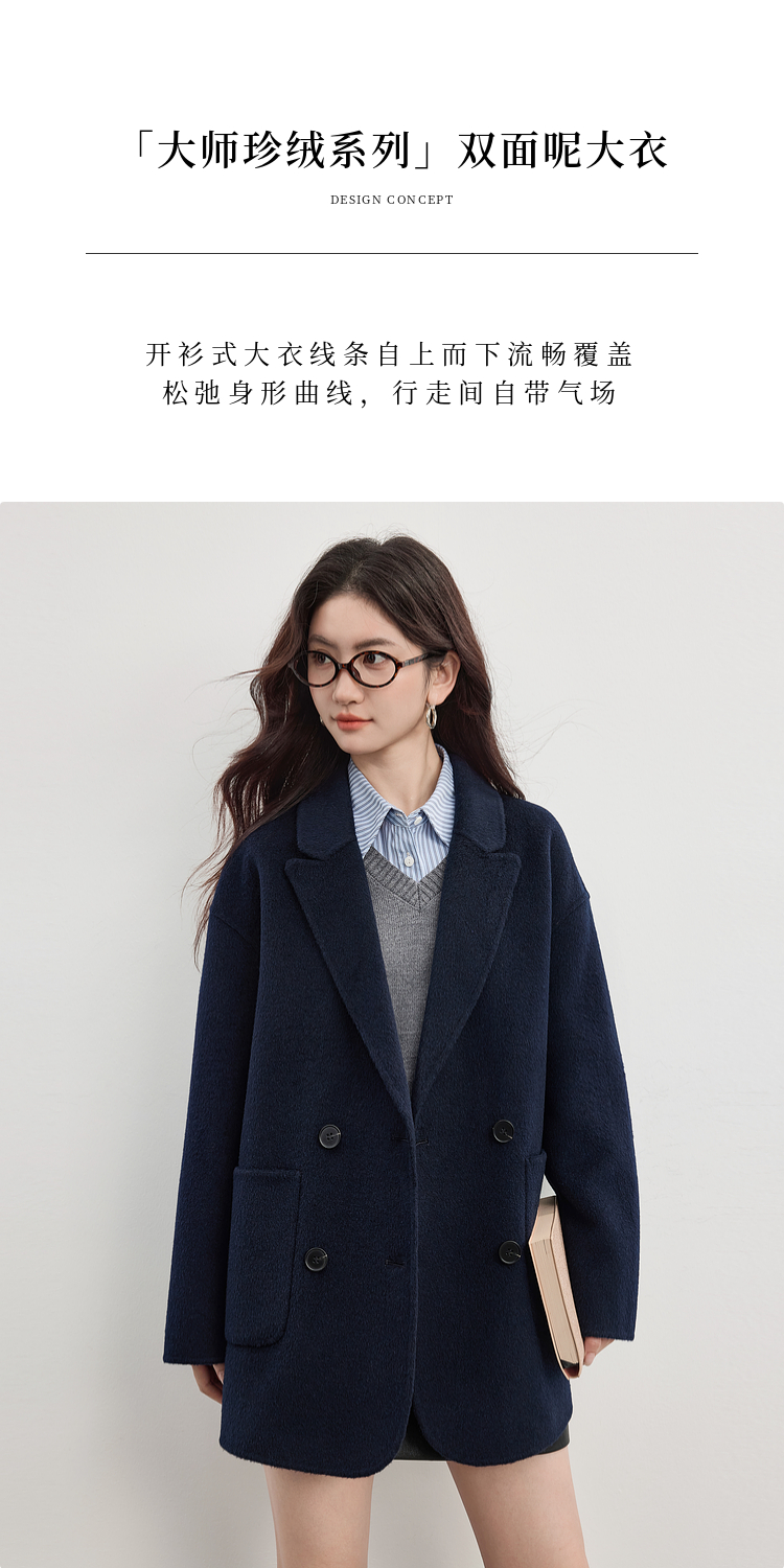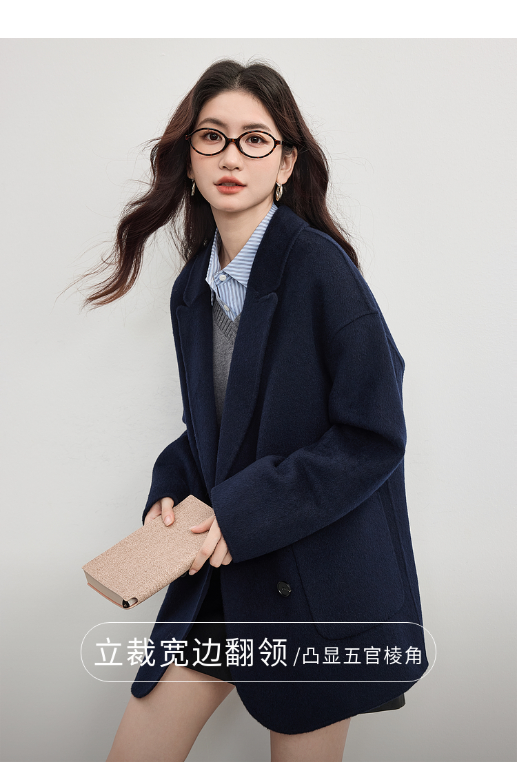 【09/17新品】熙世界绵羊毛双面呢外套女2025秋冬新款高端山羊绒翻驳领毛呢大衣