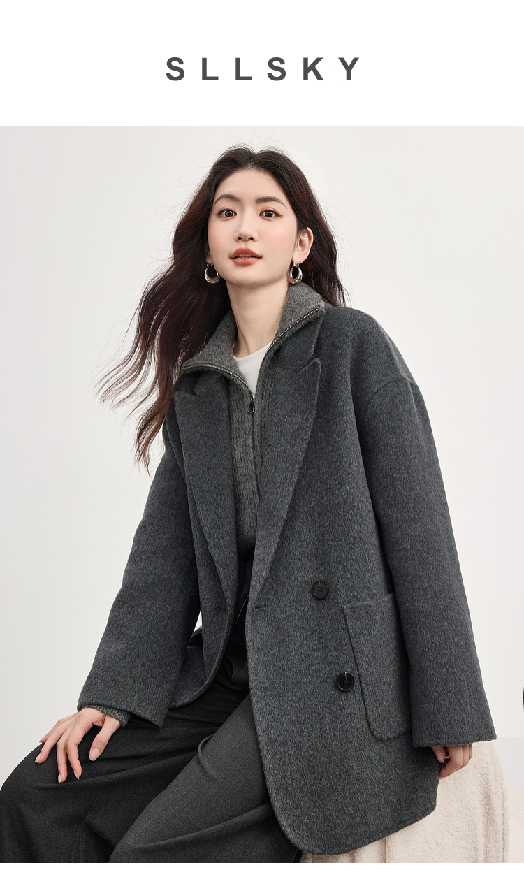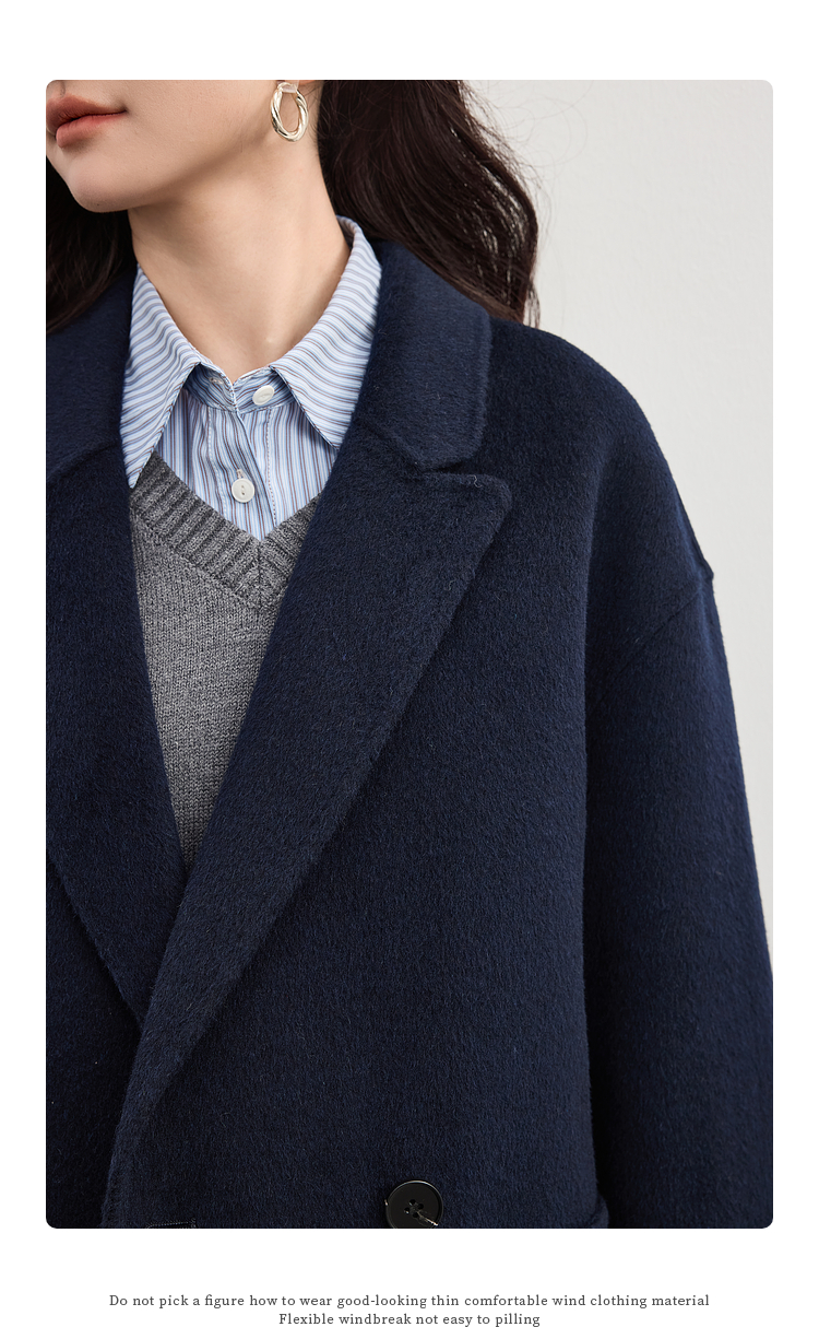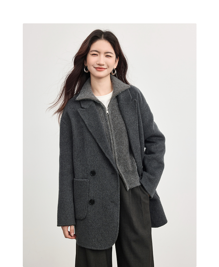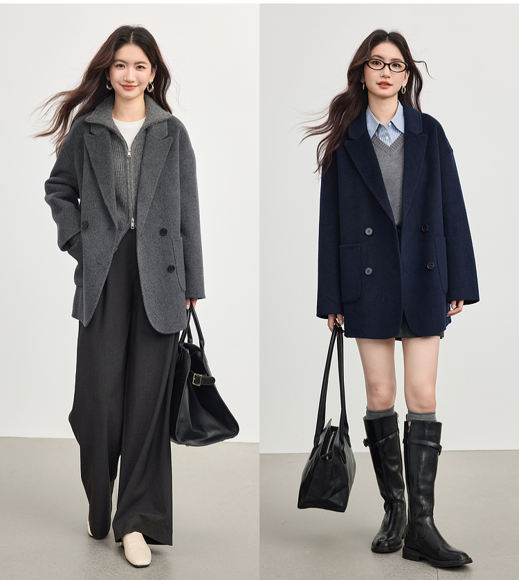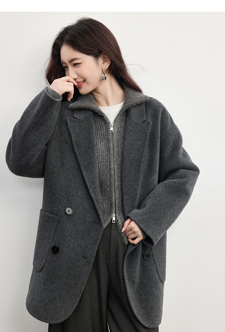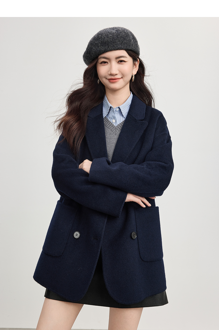 【09/17新品】熙世界绵羊毛双面呢外套女2025秋冬新款高端山羊绒翻驳领毛呢大衣