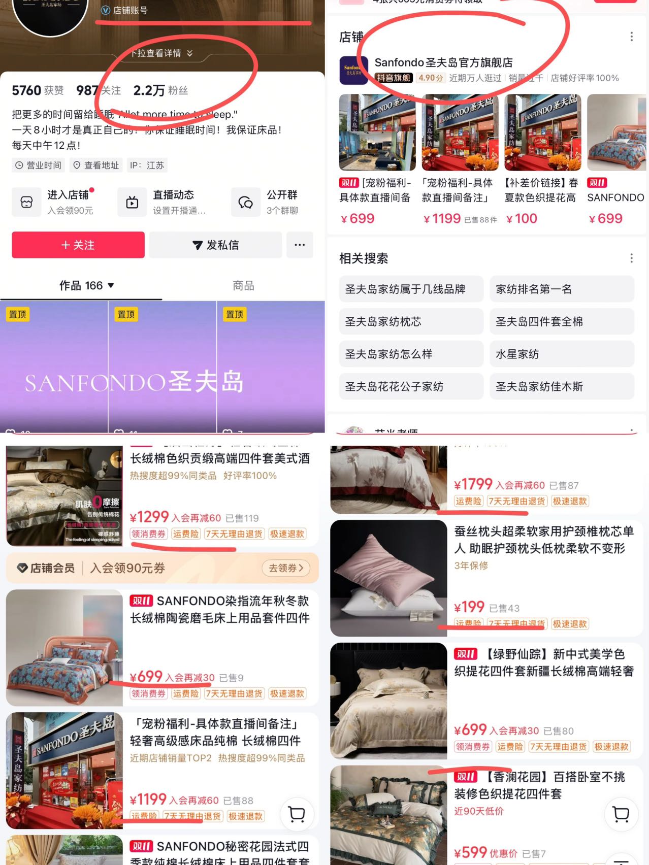 圣夫岛这个品牌是专业做线下专柜实体店的,他们家定位也是属于高端家纺定位