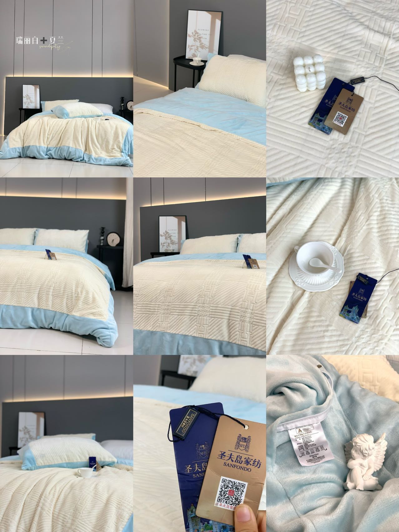 🔥正品圣夫岛家纺高克重❗️高品质❗️品牌❗️牛奶绒四件套,每一套都是做有的拼接,和雕花的工艺
