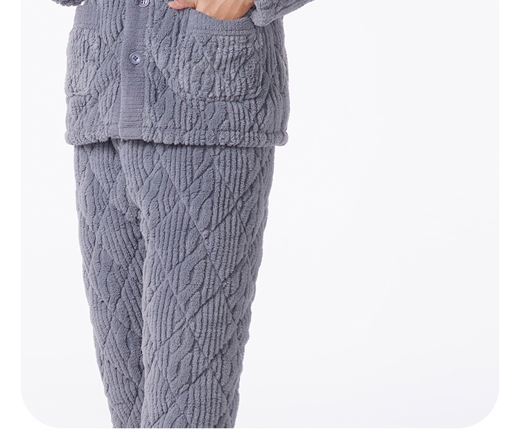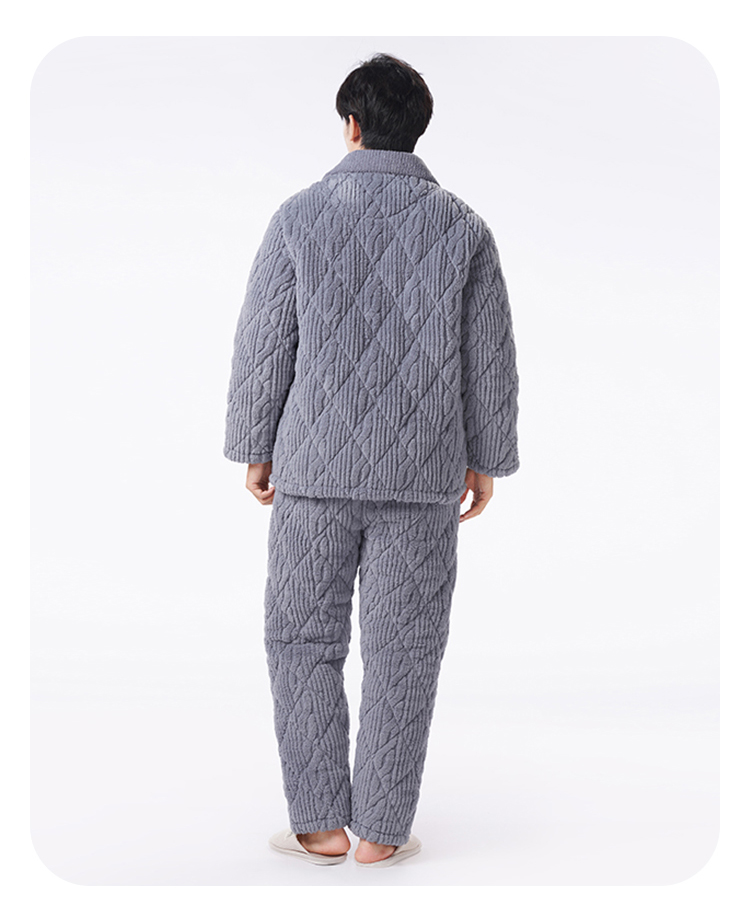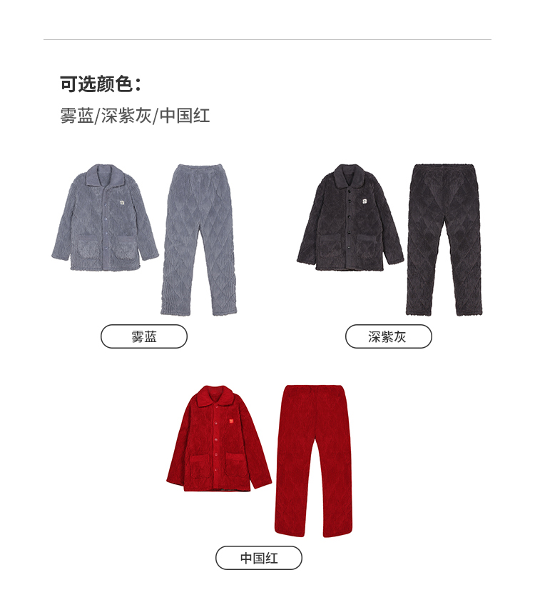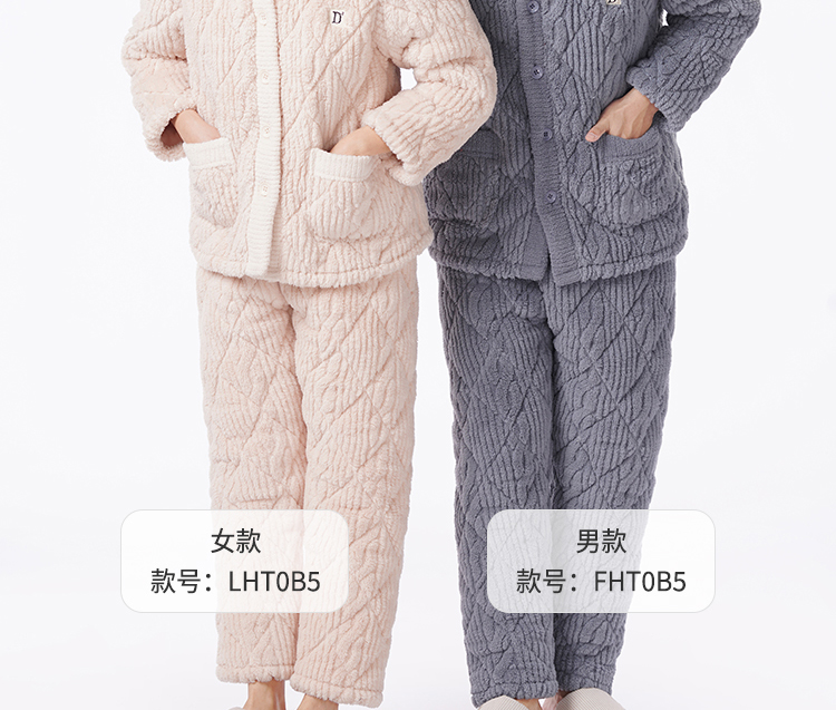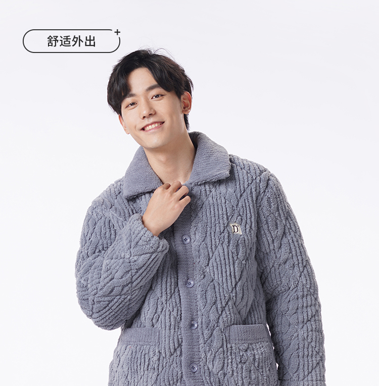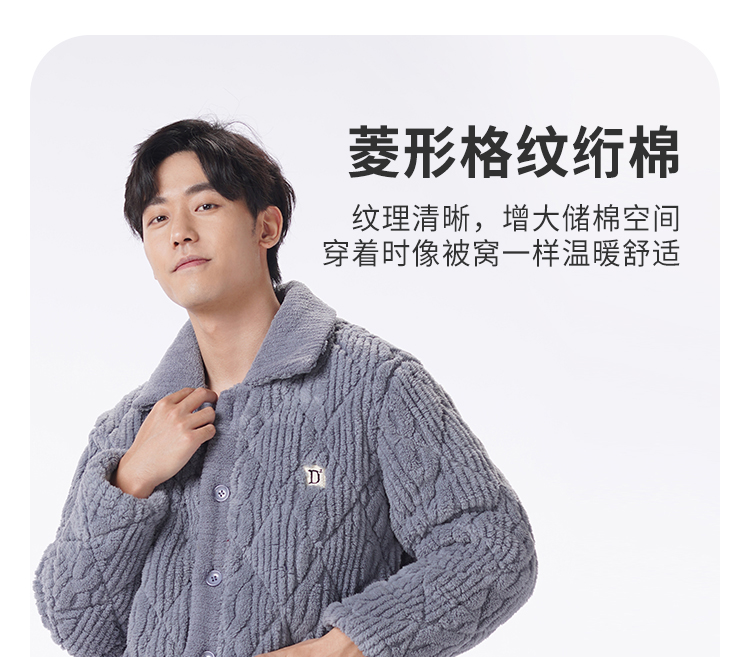 都市丽人都市锋尚睡衣亲情蜜语长袖长毛绒剪花夹棉加加厚男士加夹棉套装FHT0B5