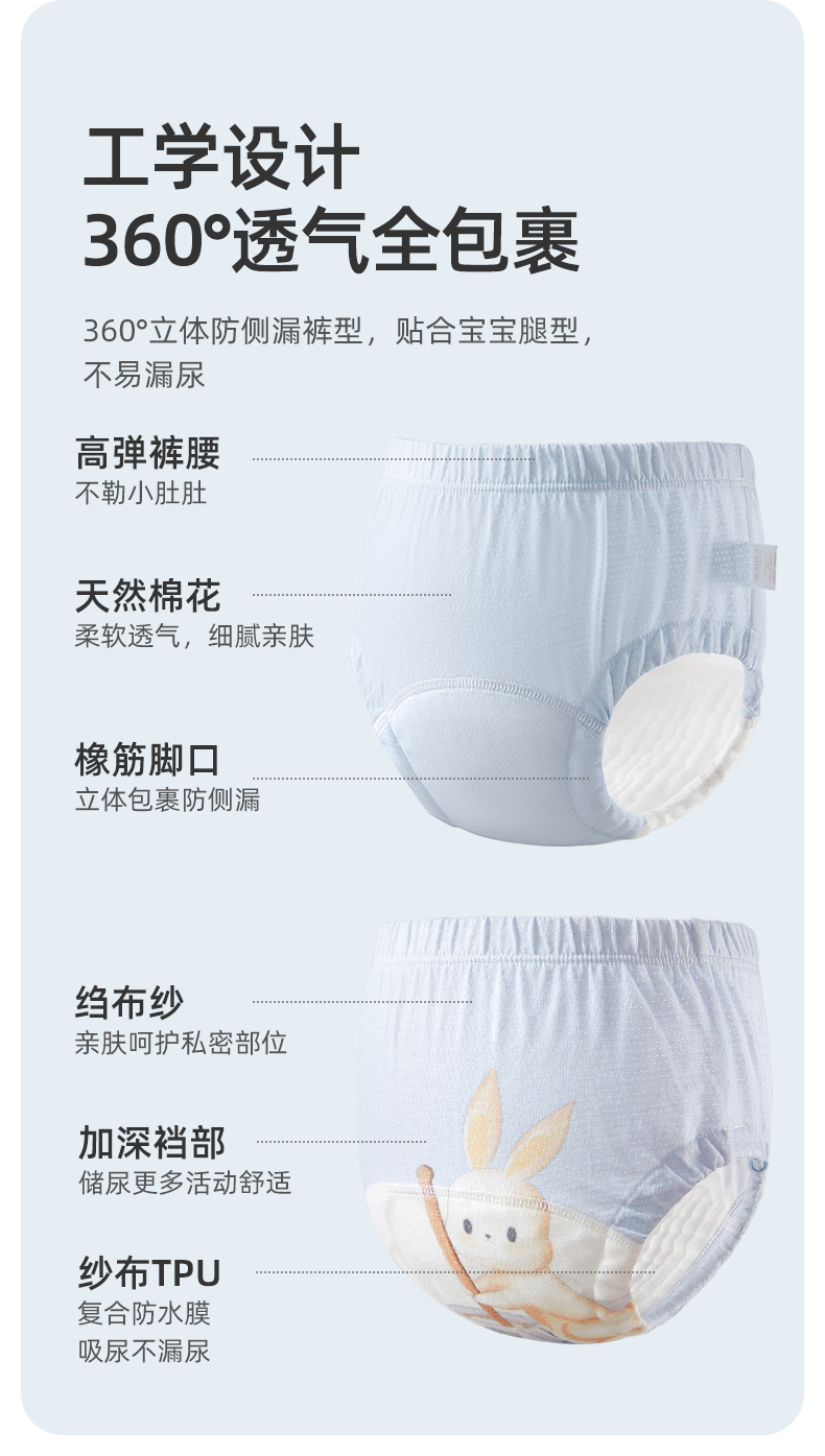 宝宝如厕训练裤尿布裤可洗裤 赠【便携洗衣皂80g*5块】