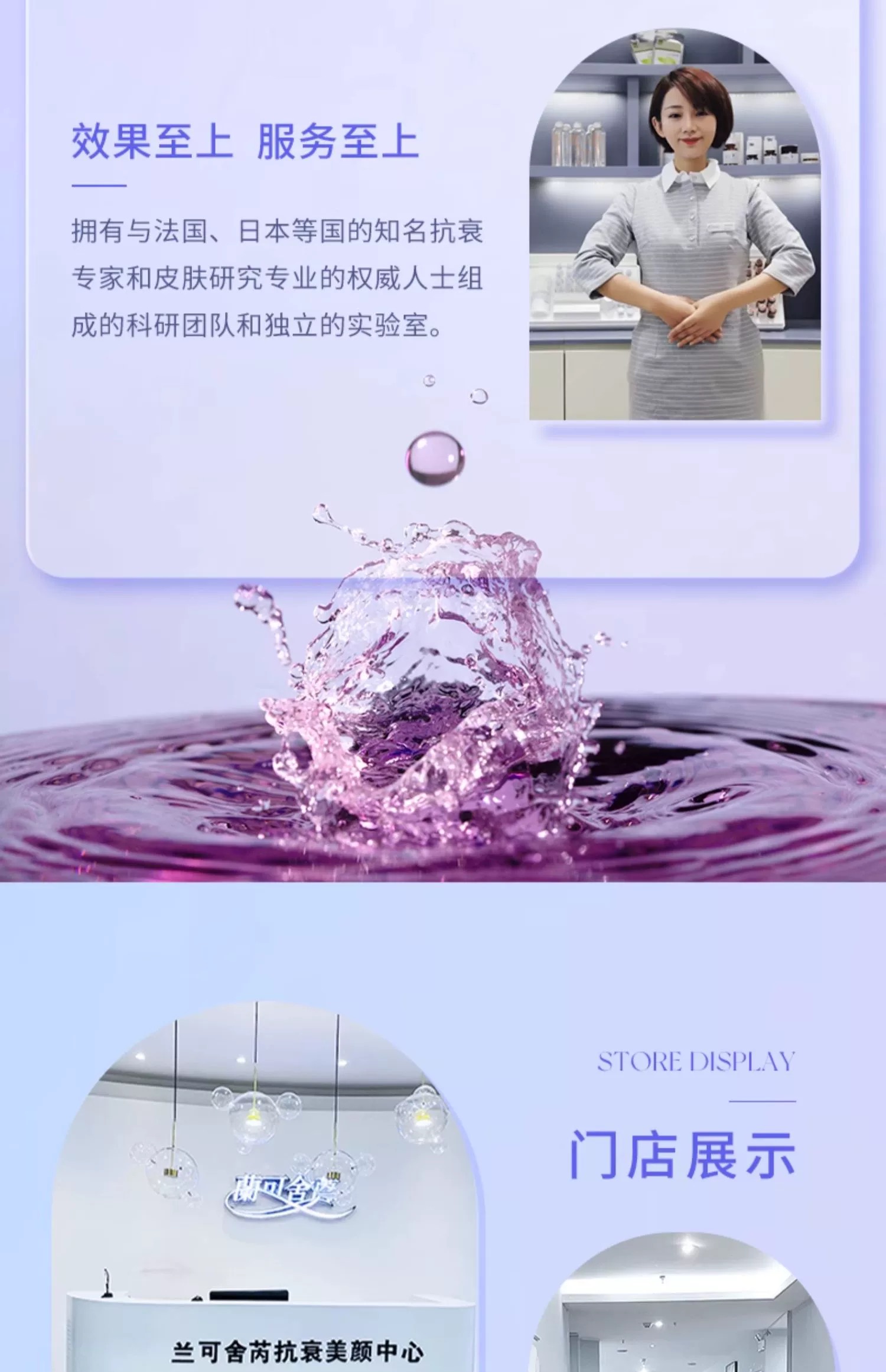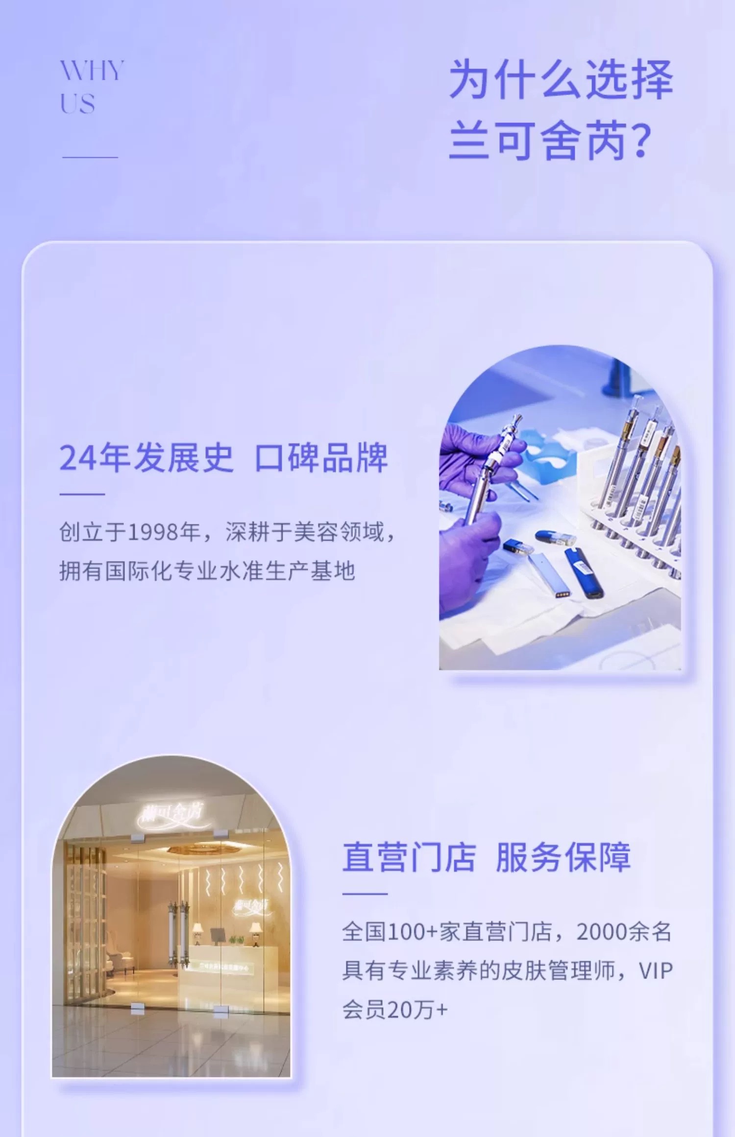 兰可舍芮是以科技美肤为主导,倡导女性科学护肤的新概念,以“探索美、逆转美、定格美”的科学阶段式护肤理念,成功推出了多种系列美容护肤产品及项目,并且搭配娴熟的美容手法,旨在为每位爱美女性提供科学的美颜方
