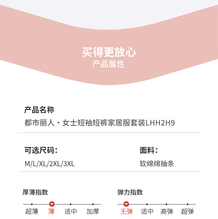 都市丽人会员精选女士软绵绵短袖套装薄软绵绵抽条短袖类LHH2H9