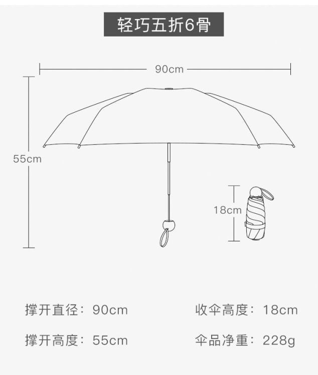 中秋国庆专用防晒遮阳黑胶折叠晴雨胶囊伞