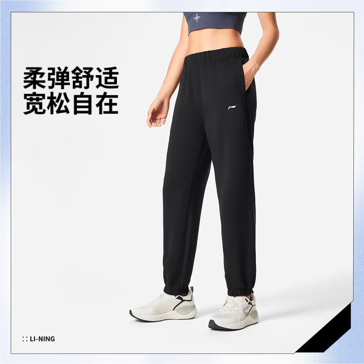 李宁女子2025秋季束脚宽松运动裤AKLV334-4