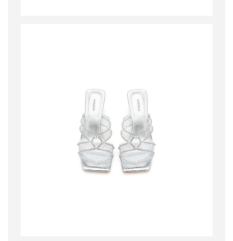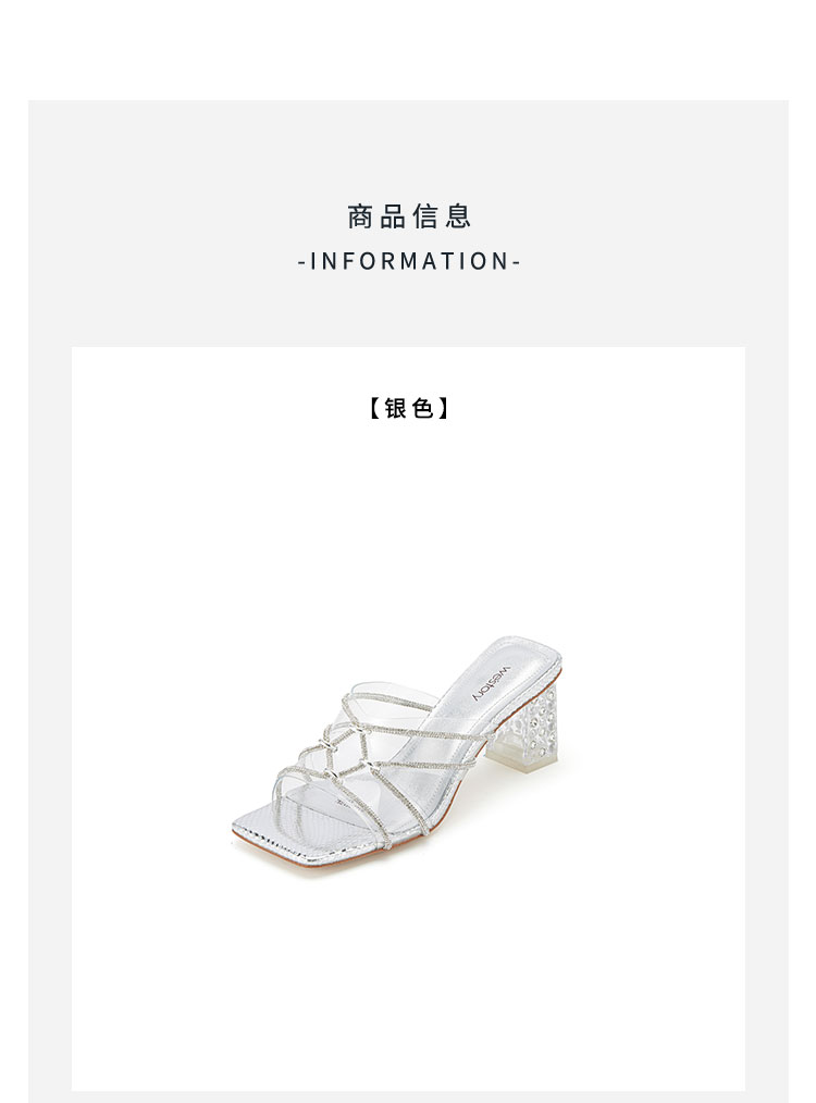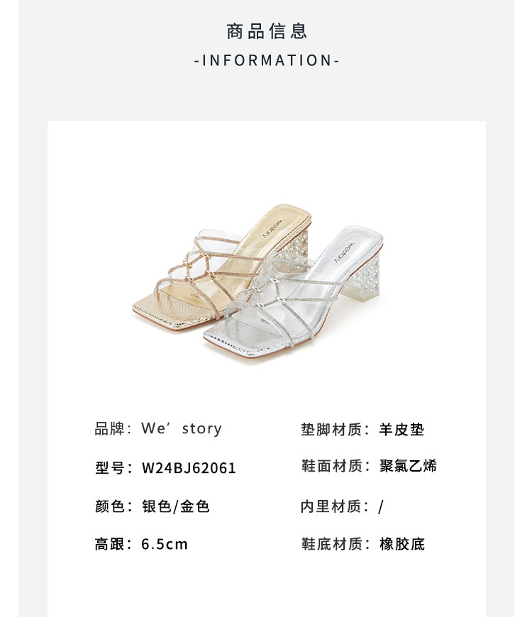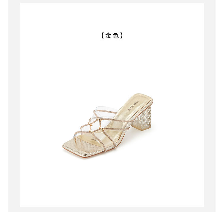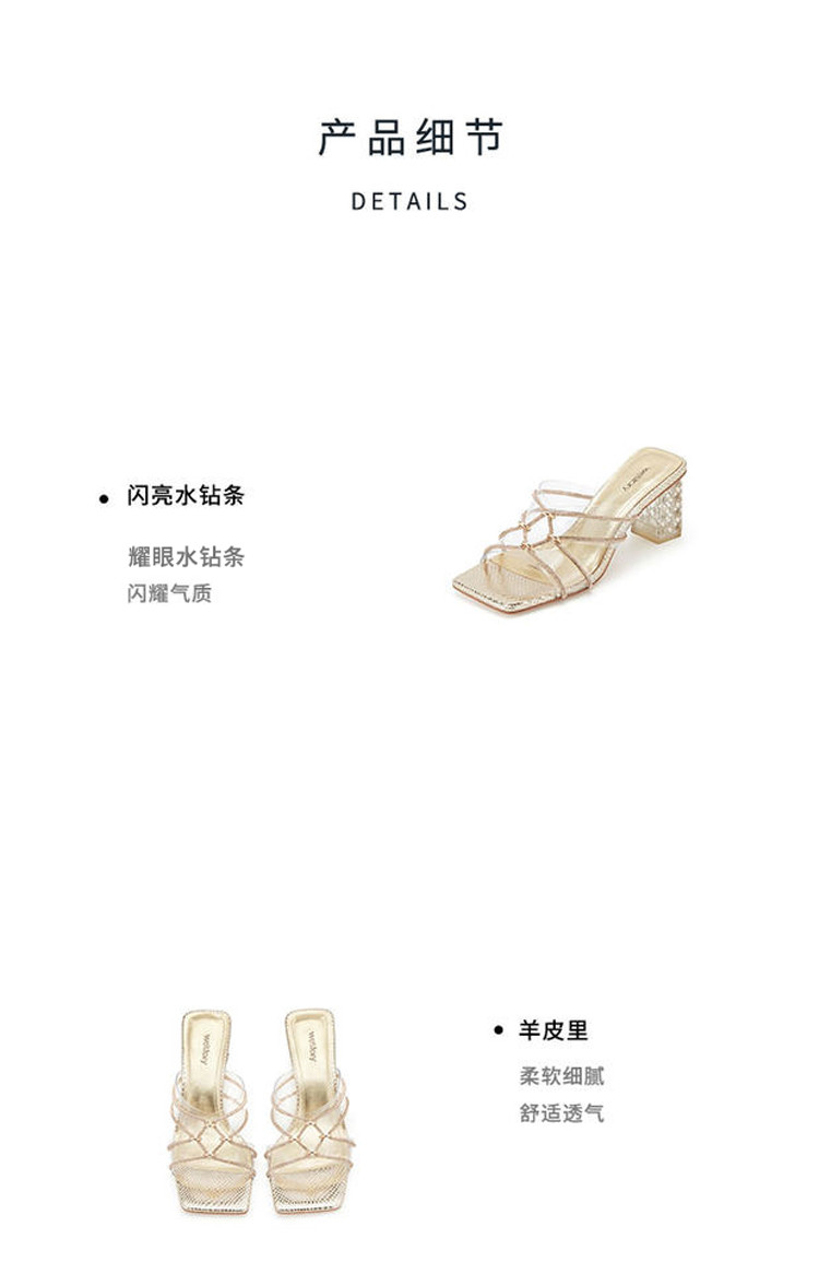 westory夏季新款细中跟方头舒适优雅凉鞋半拖鞋W24BJ62061