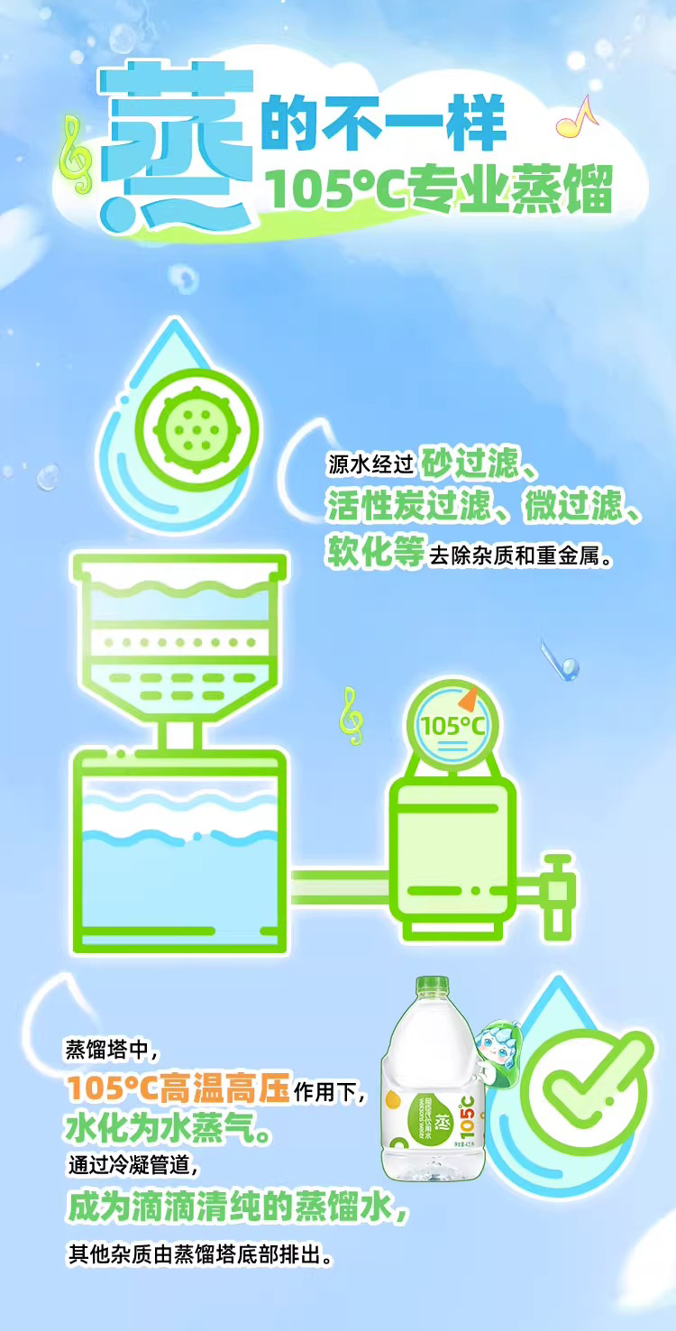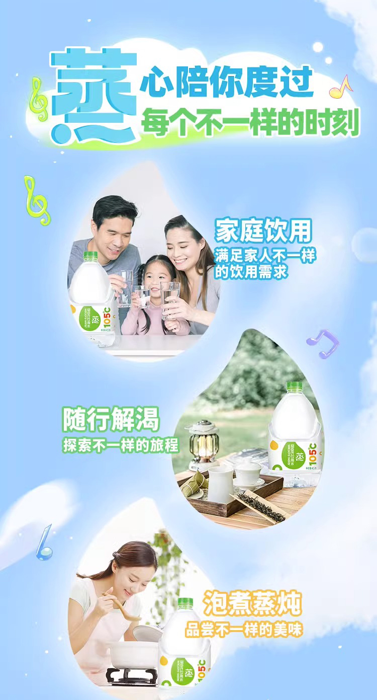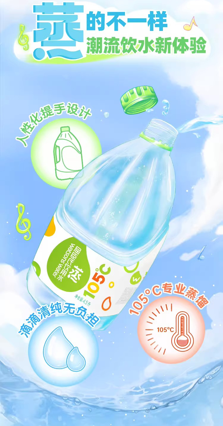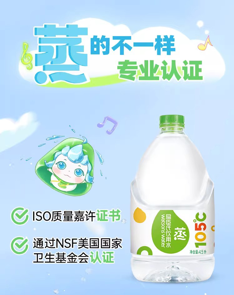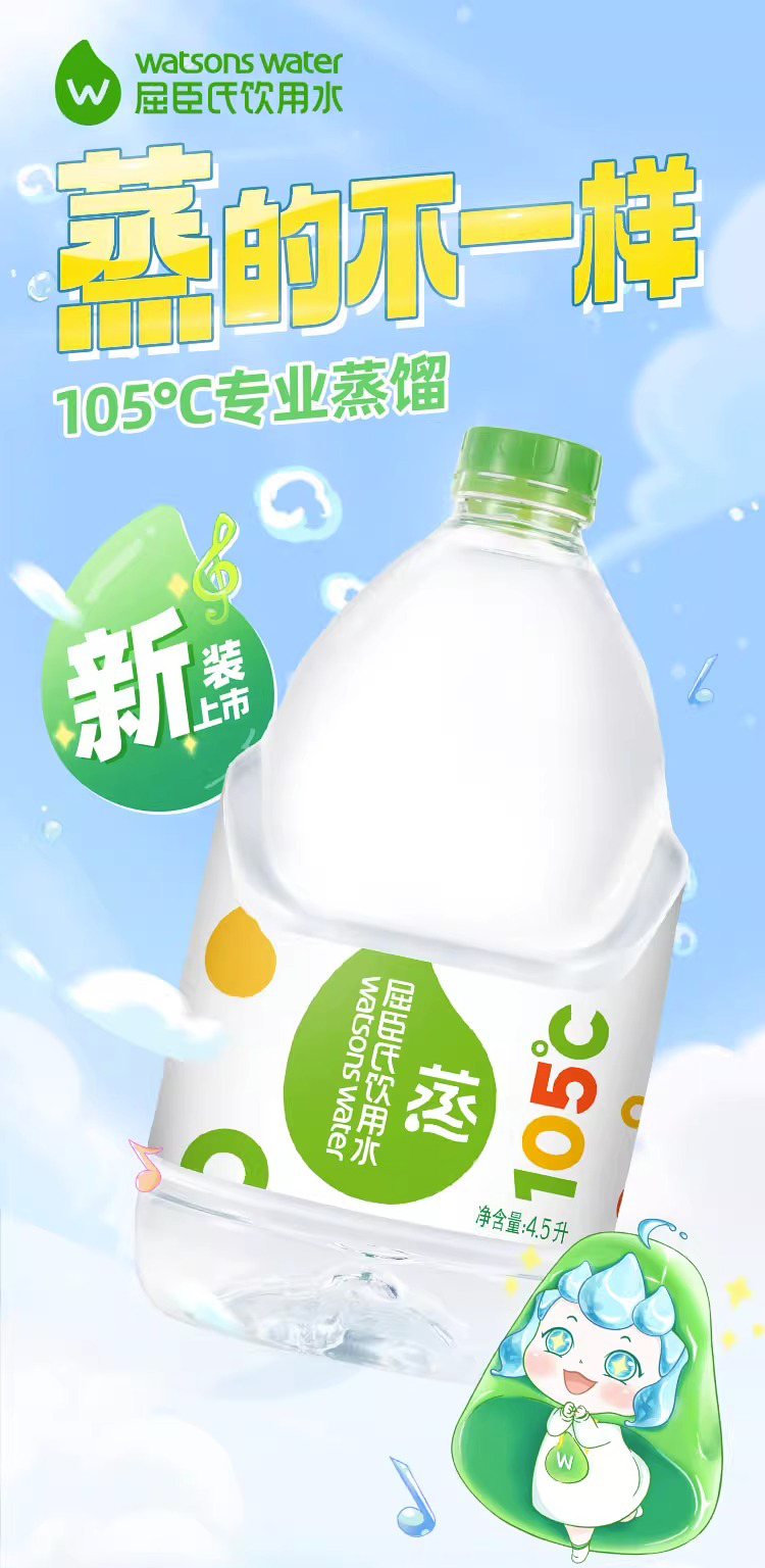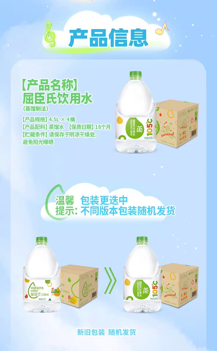 屈臣氏 105°蒸馏制法 饮用水 4.5L*4桶 整箱 补水 新老包装随机发货 包邮
