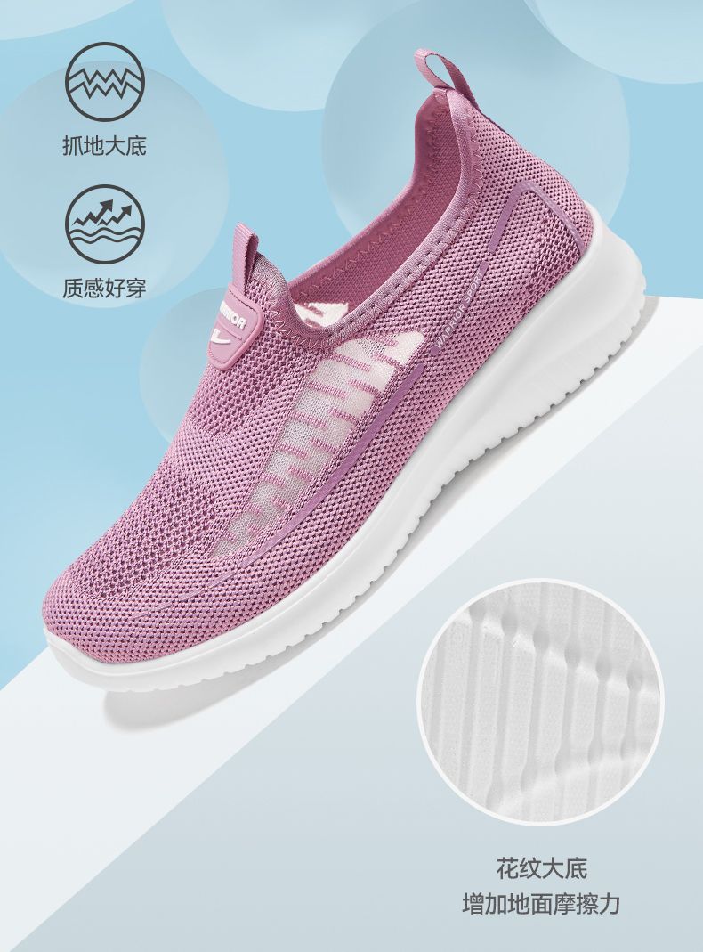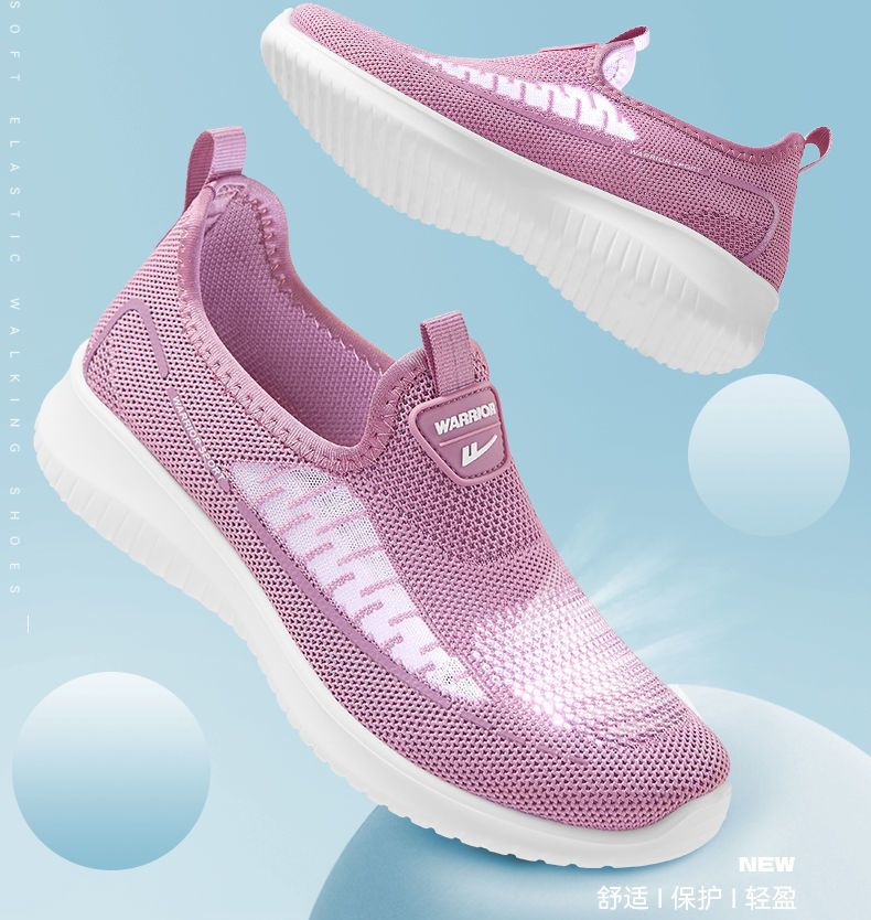 回力女鞋妈妈鞋秋季新款套脚透气中老年轻薄软底一脚蹬老年健步鞋