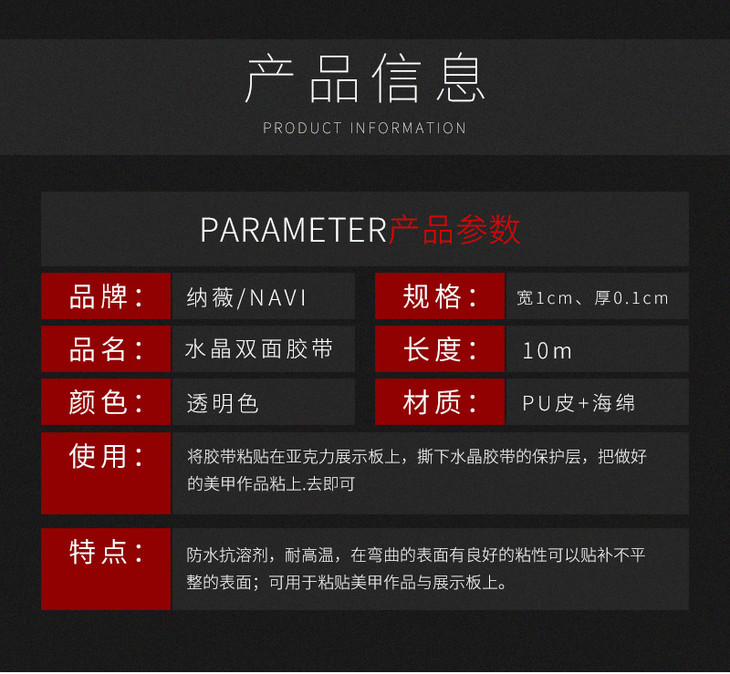NAVI 水晶胶带1cm宽 亚克力双面胶