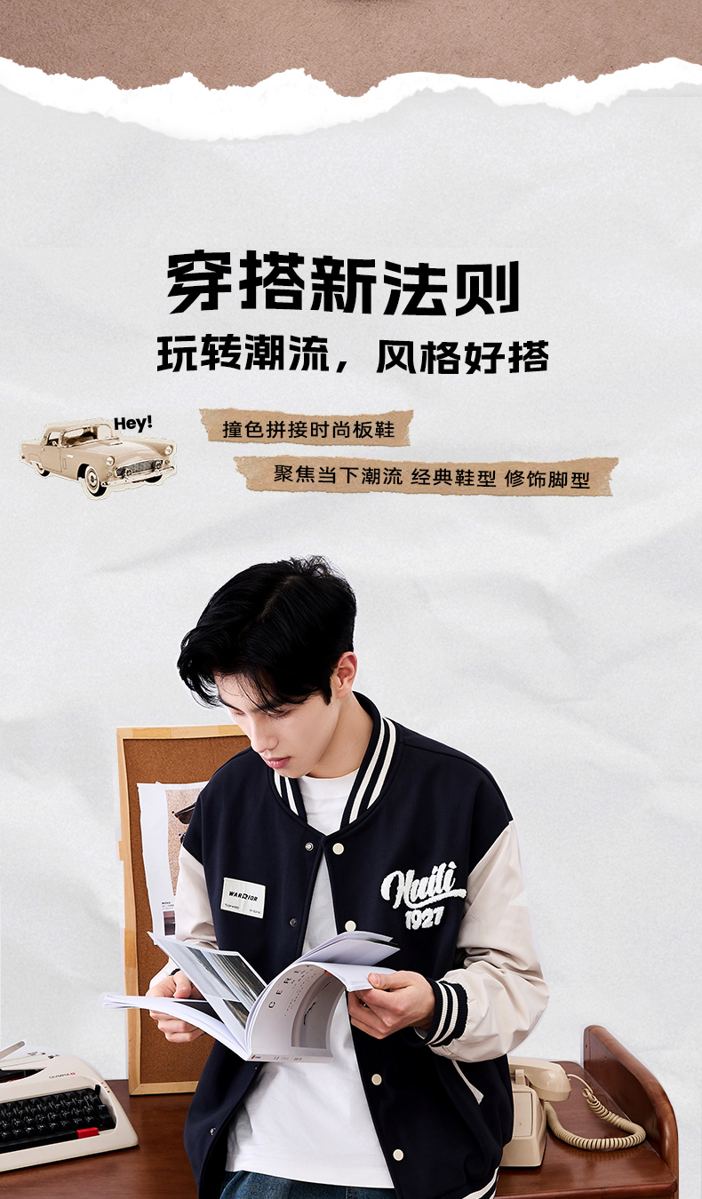 回力2025春季新款运动板鞋百搭潮流拼色男款透气休闲软底减震耐磨