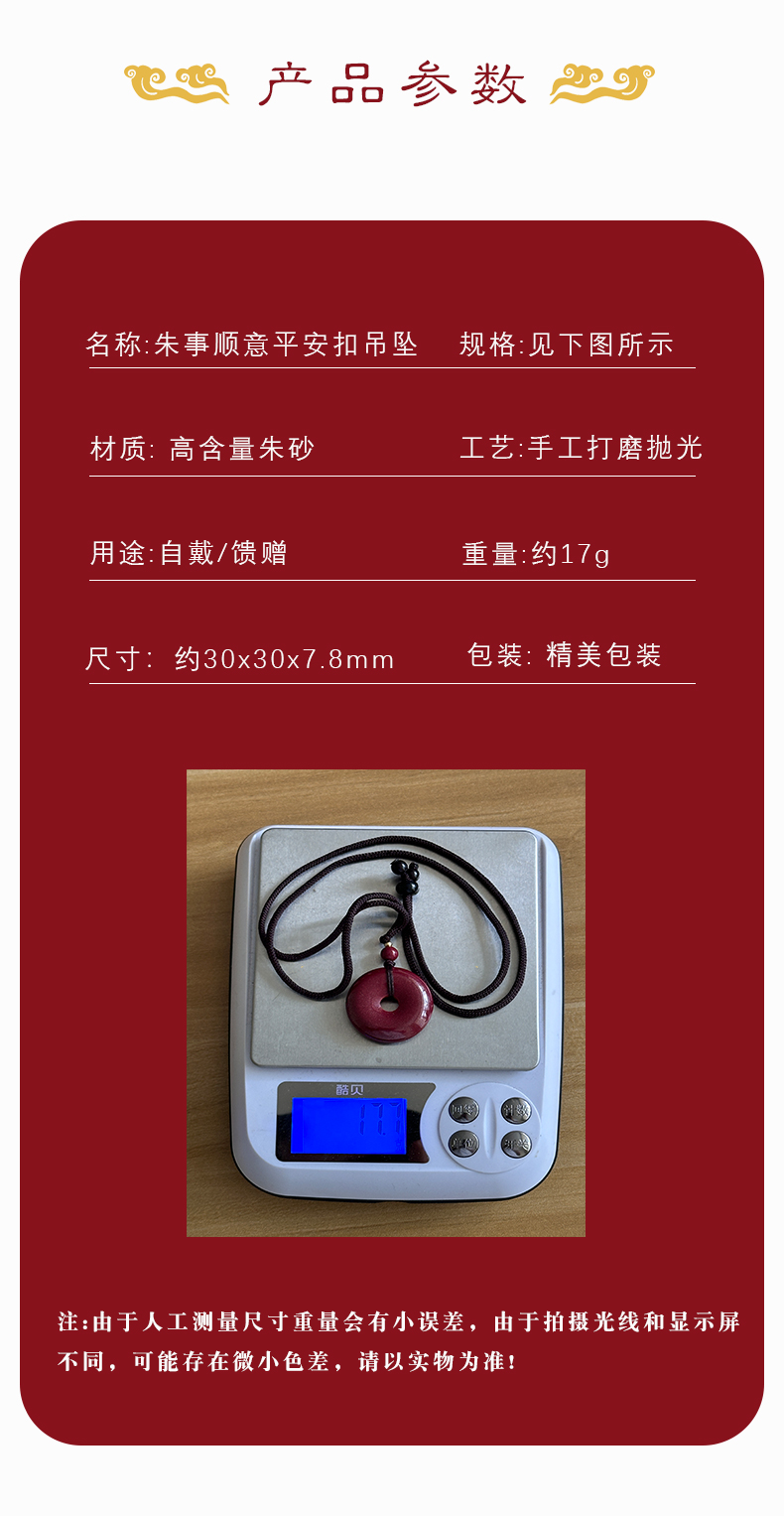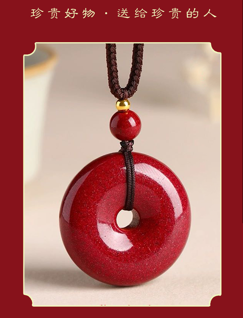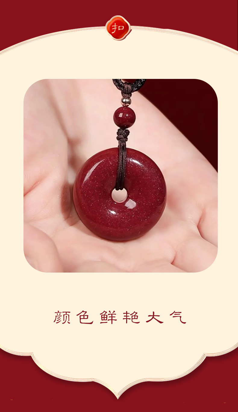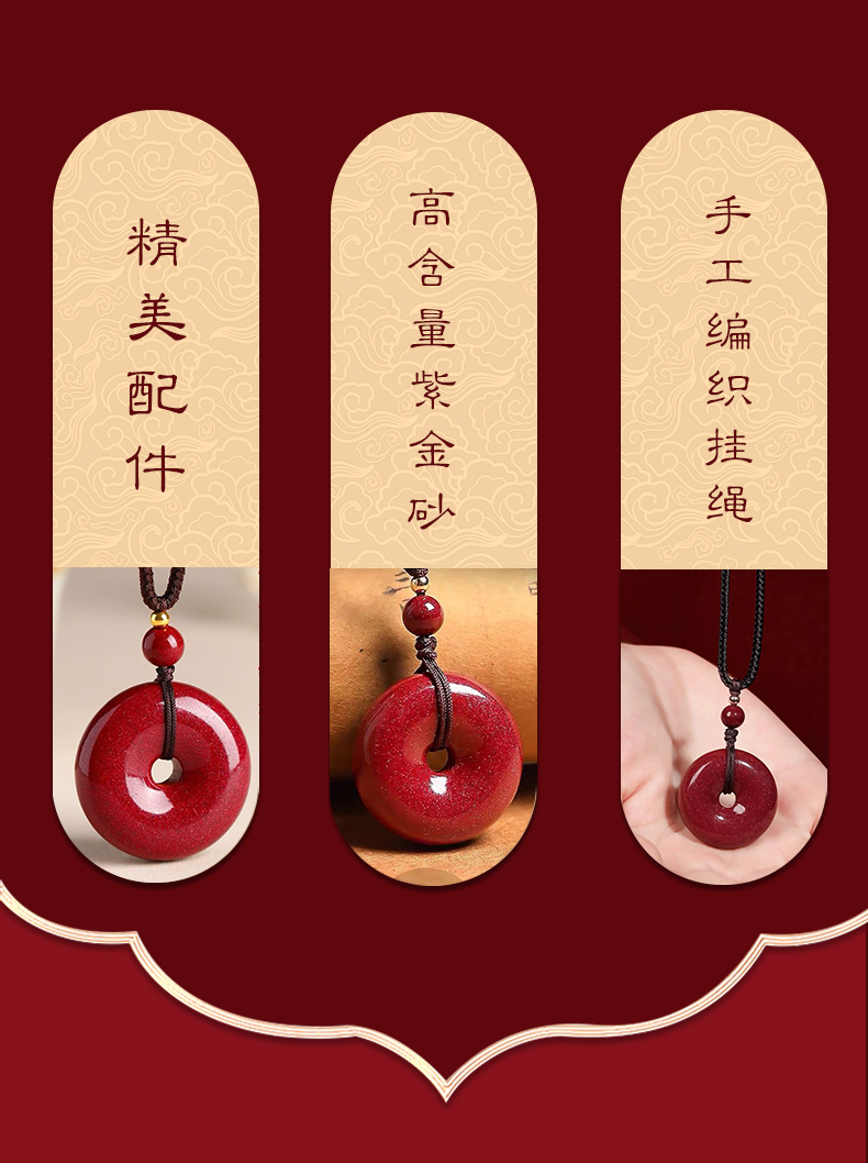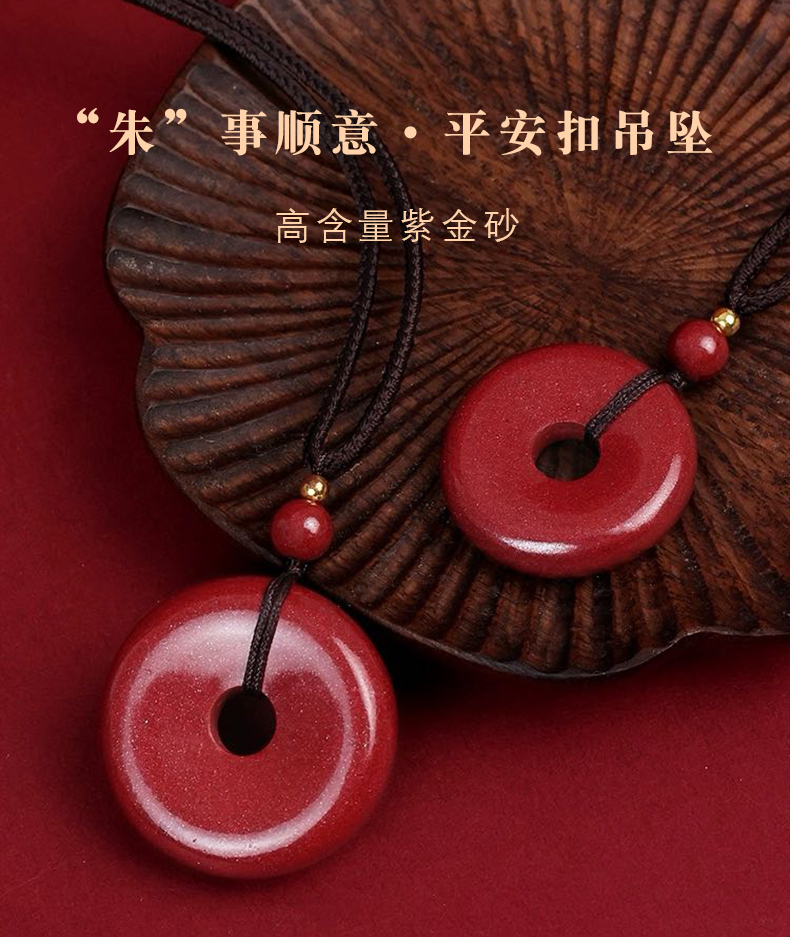 紫金砂朱砂平安扣吊坠 含挂绳