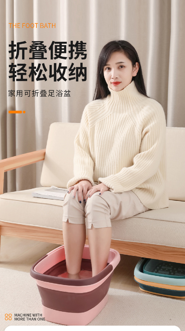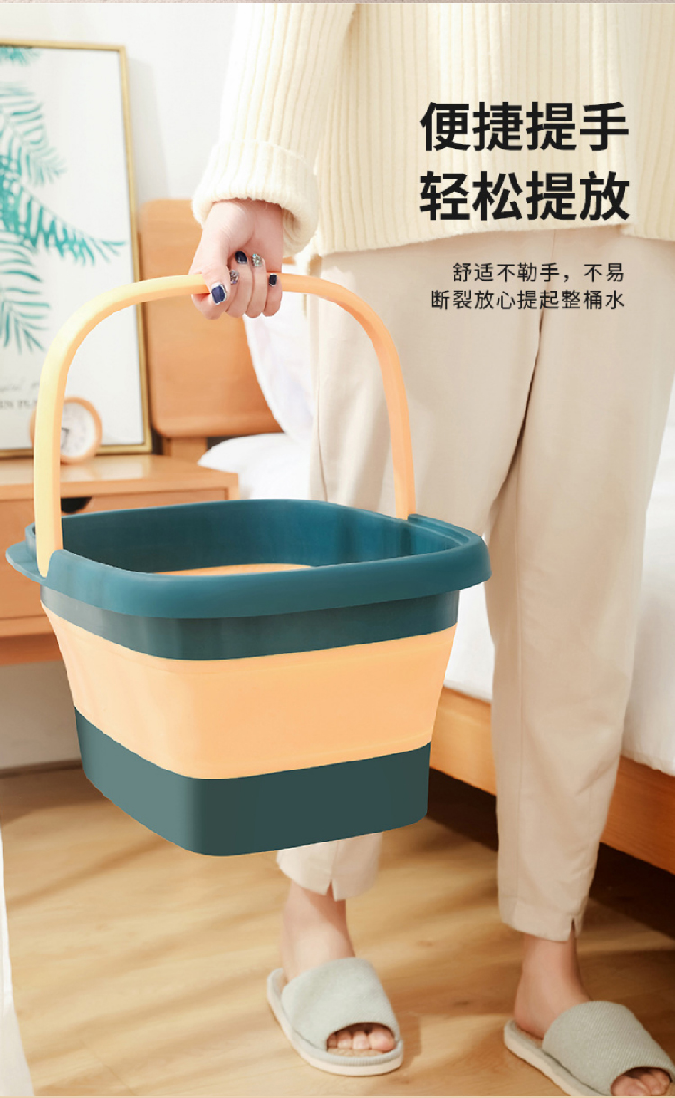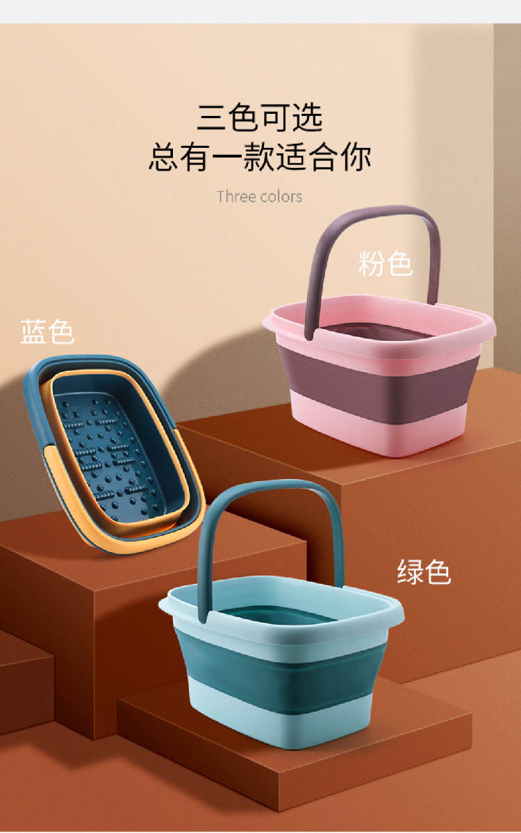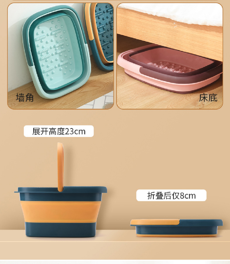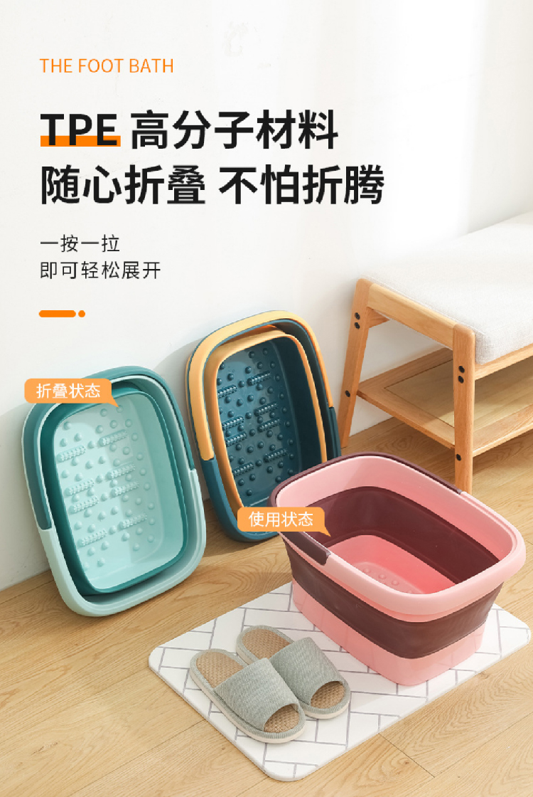 【按摩滚珠泡脚桶】便携收纳折叠手提泡脚桶 方形按摩泡脚盆足浴盆