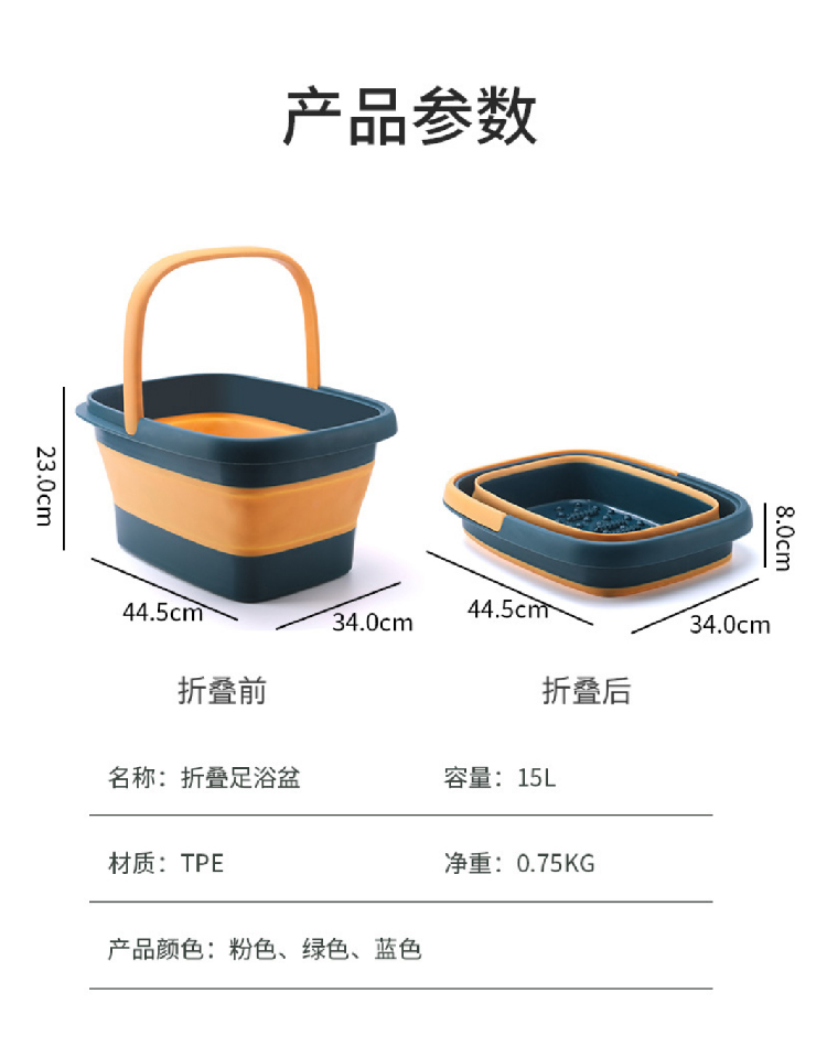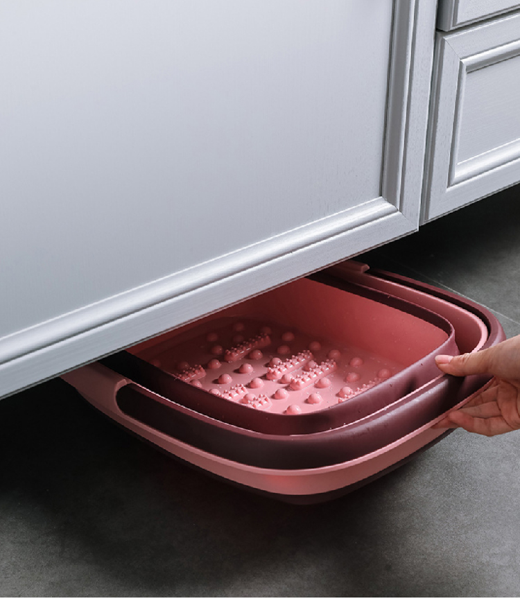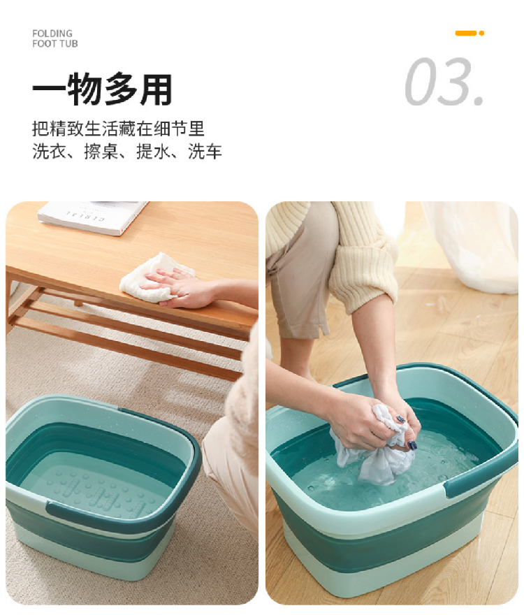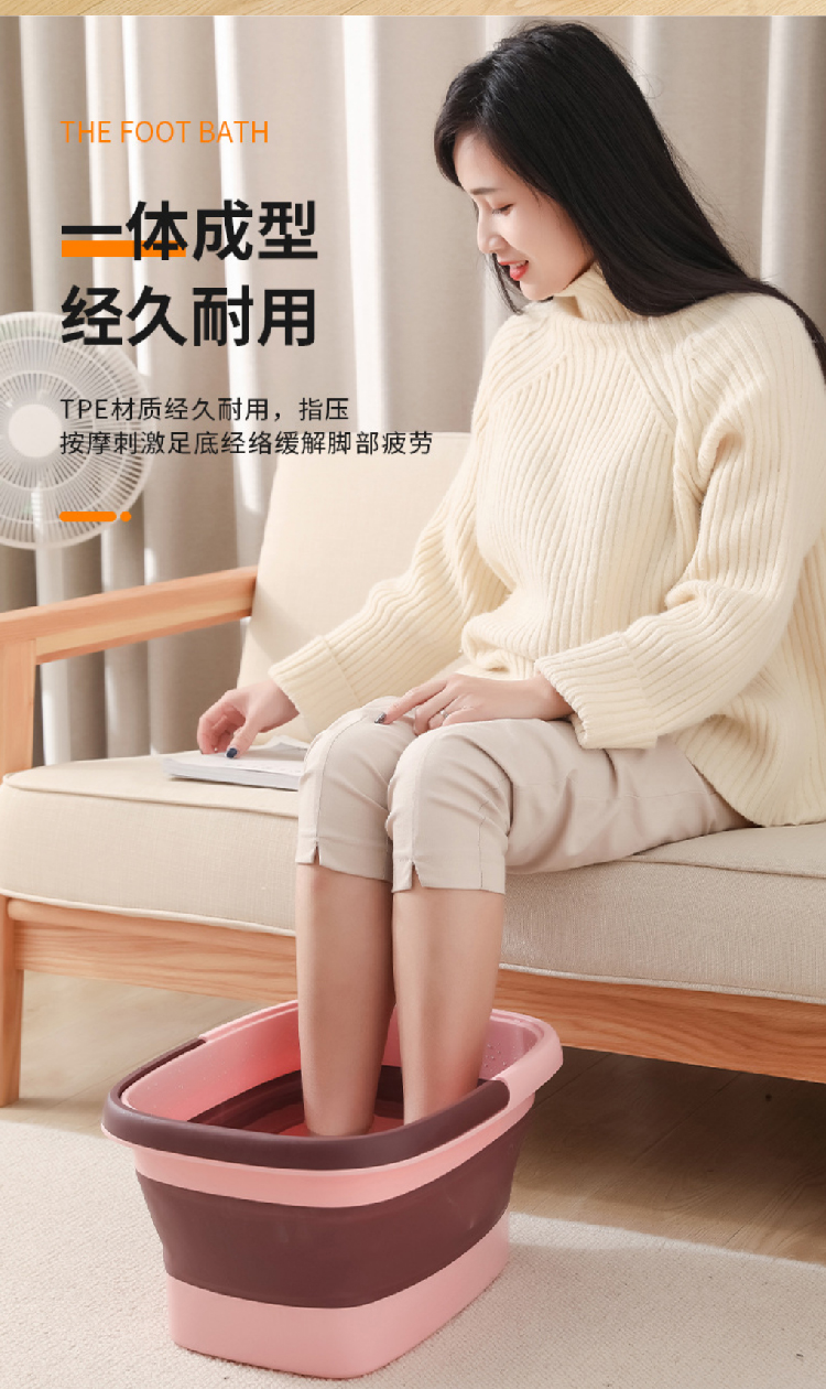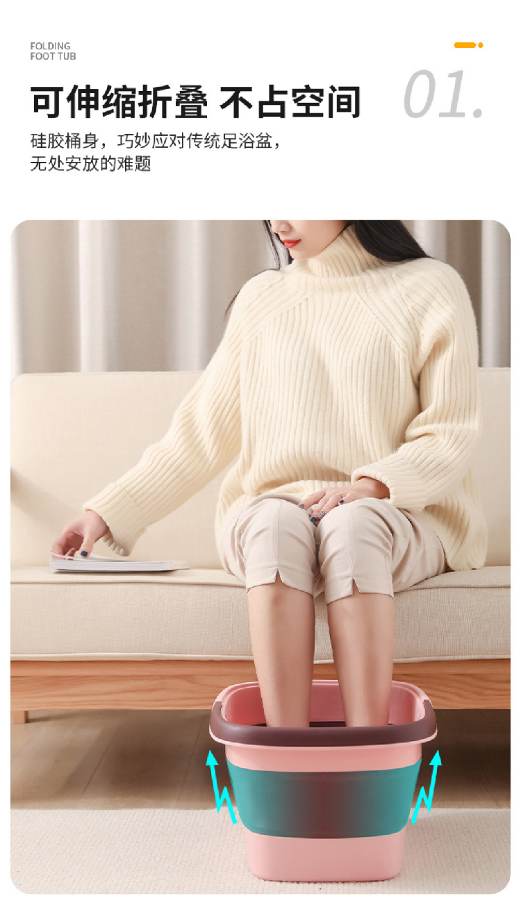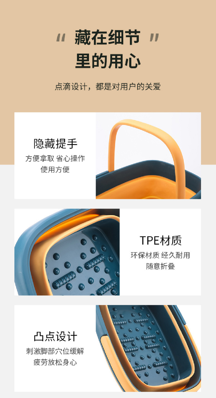 【按摩滚珠泡脚桶】便携收纳折叠手提泡脚桶 方形按摩泡脚盆足浴盆