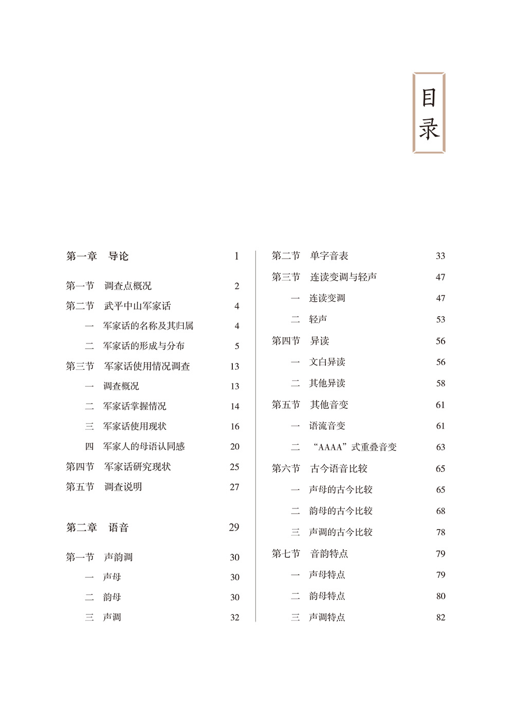 武平军家话是明代军籍官兵及其后裔所说的话,属赣客混合型方言。主要分布于福建省武平县中山镇的一些乡村,处在客家话的包围之中,使用人口有6000余人。本书在多次实地调查的基础上,深入系统地描写了军家话的语音、词汇、语法特点,列举了翔实的同音字汇、分类词表和语法例句,进行了细致地军家话社区双方言交际现状量化研究,并搜集了当地流传的俗语谚语、谜语、歌谣、吟诵、故事及其他动态话语材料,记录了军家话的宝贵语料,全面呈现了军家话的面貌。