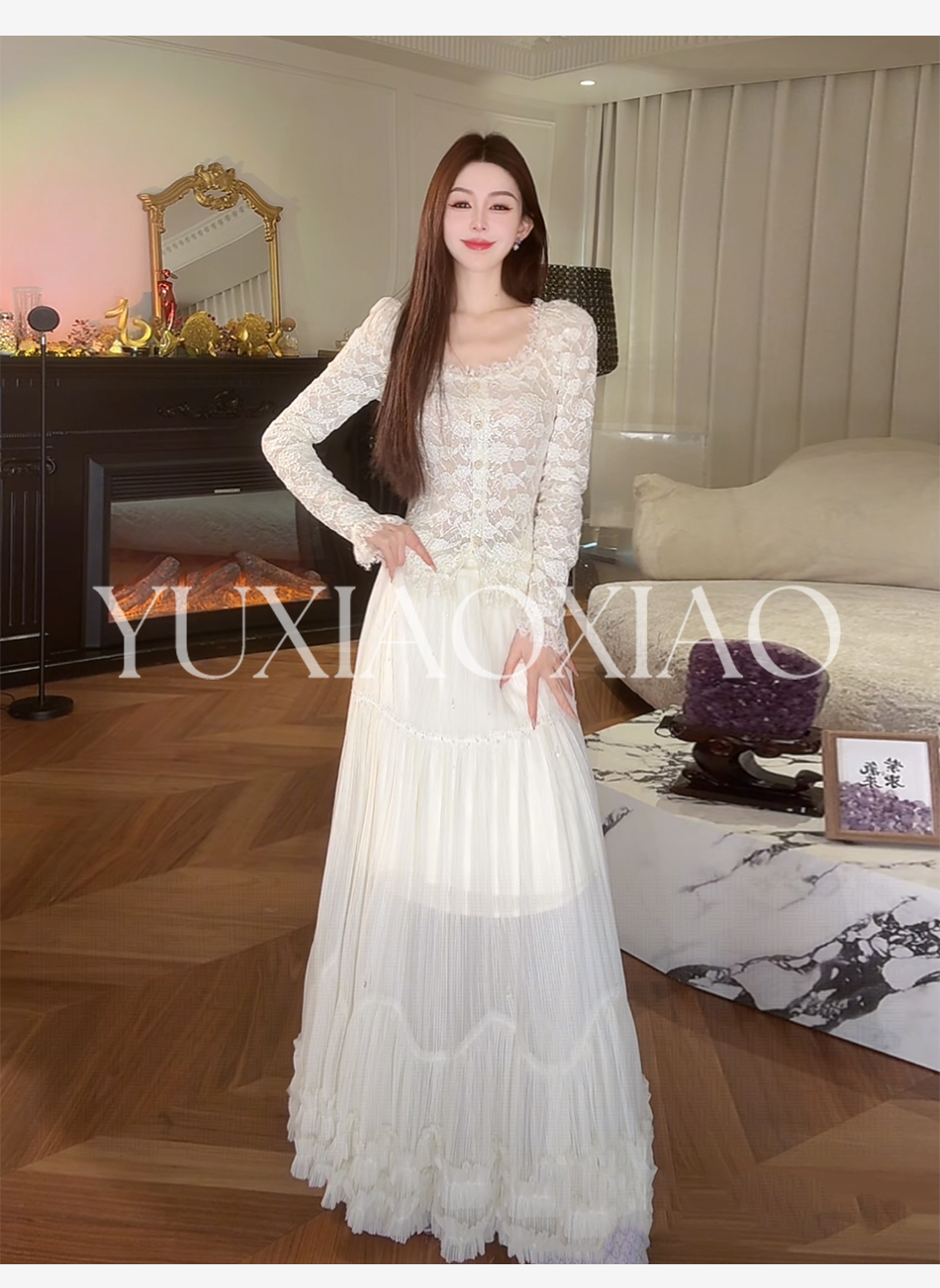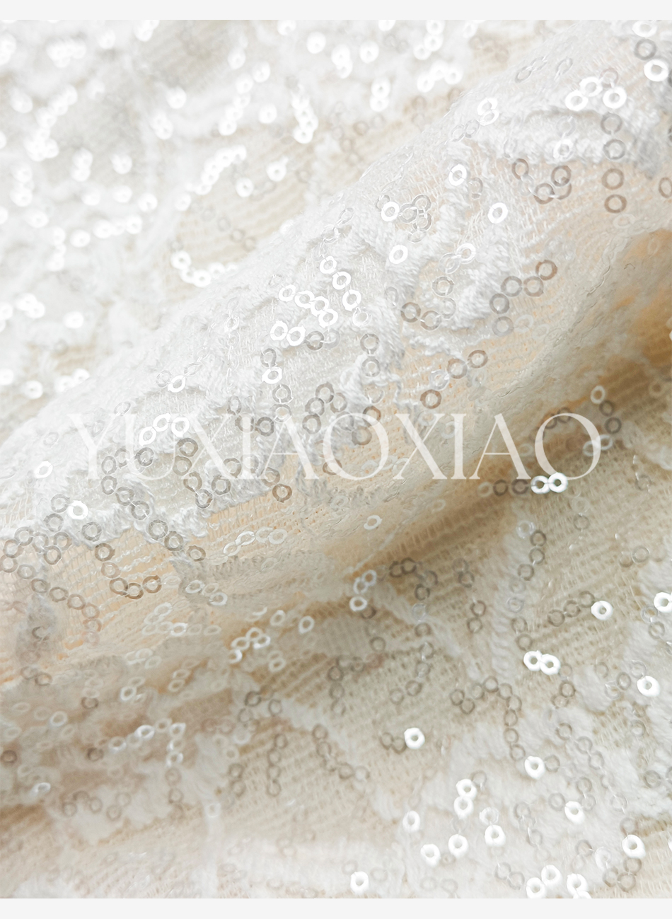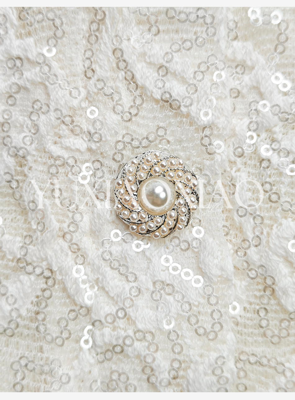 余潇潇【温柔白玉兰】时髦设计棉感亮片蕾丝手缝水晶珠方领花边上衣