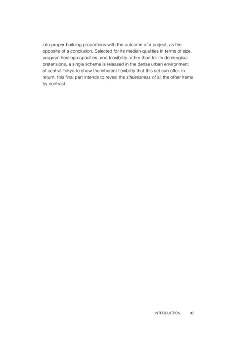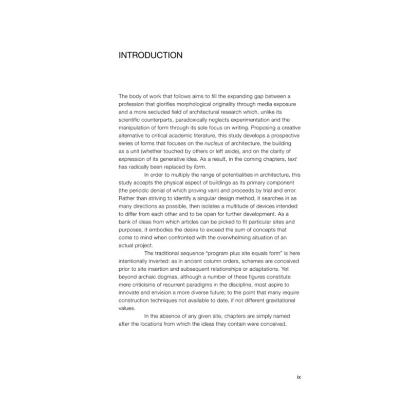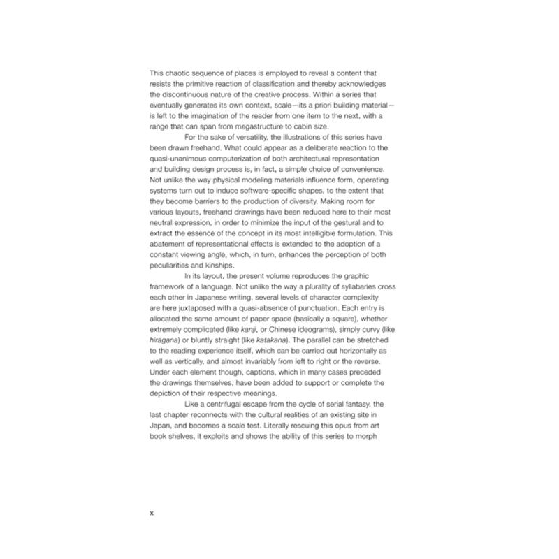 An attempt to free architecture from site and program constraints and to counter the profusion of ever bigger architecture books with ever smaller content.