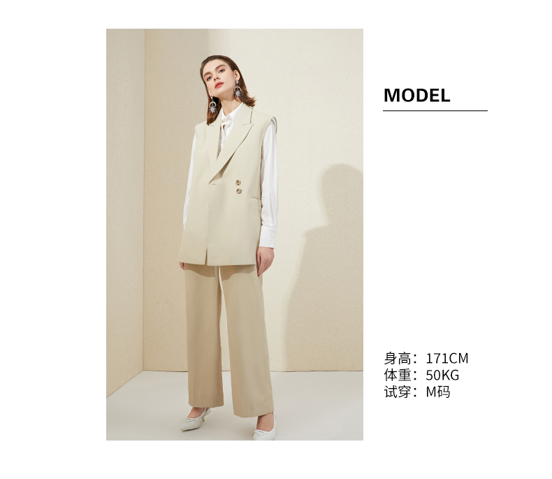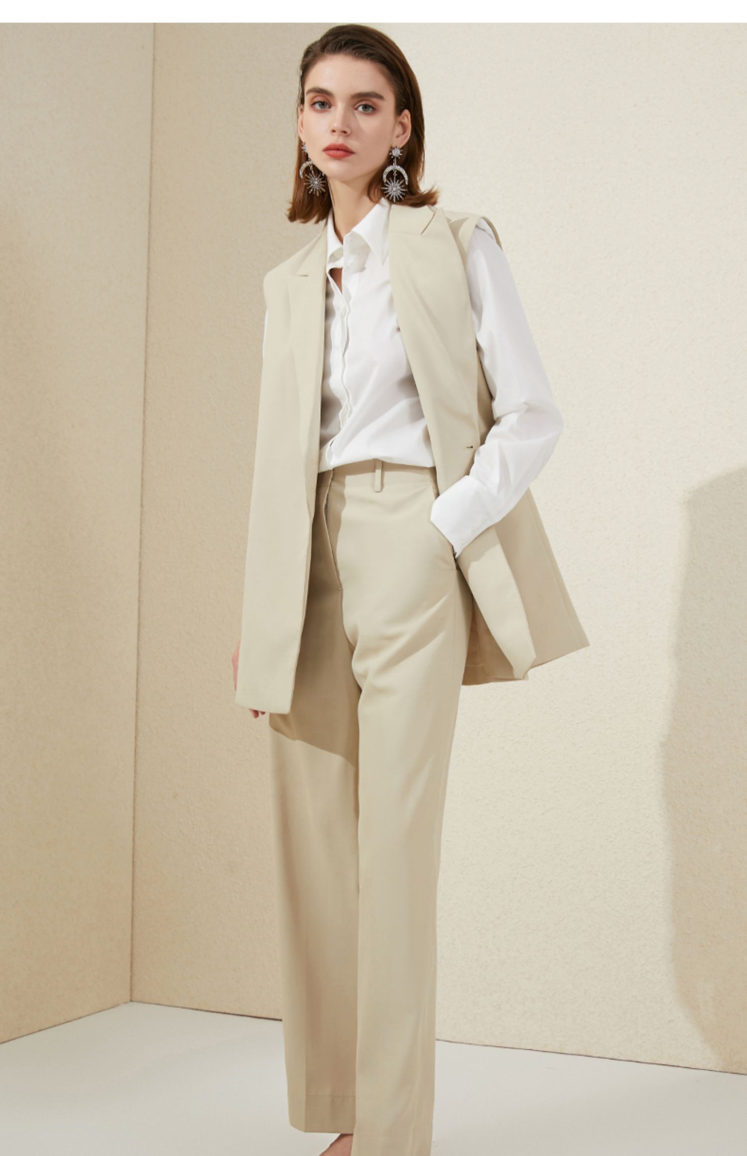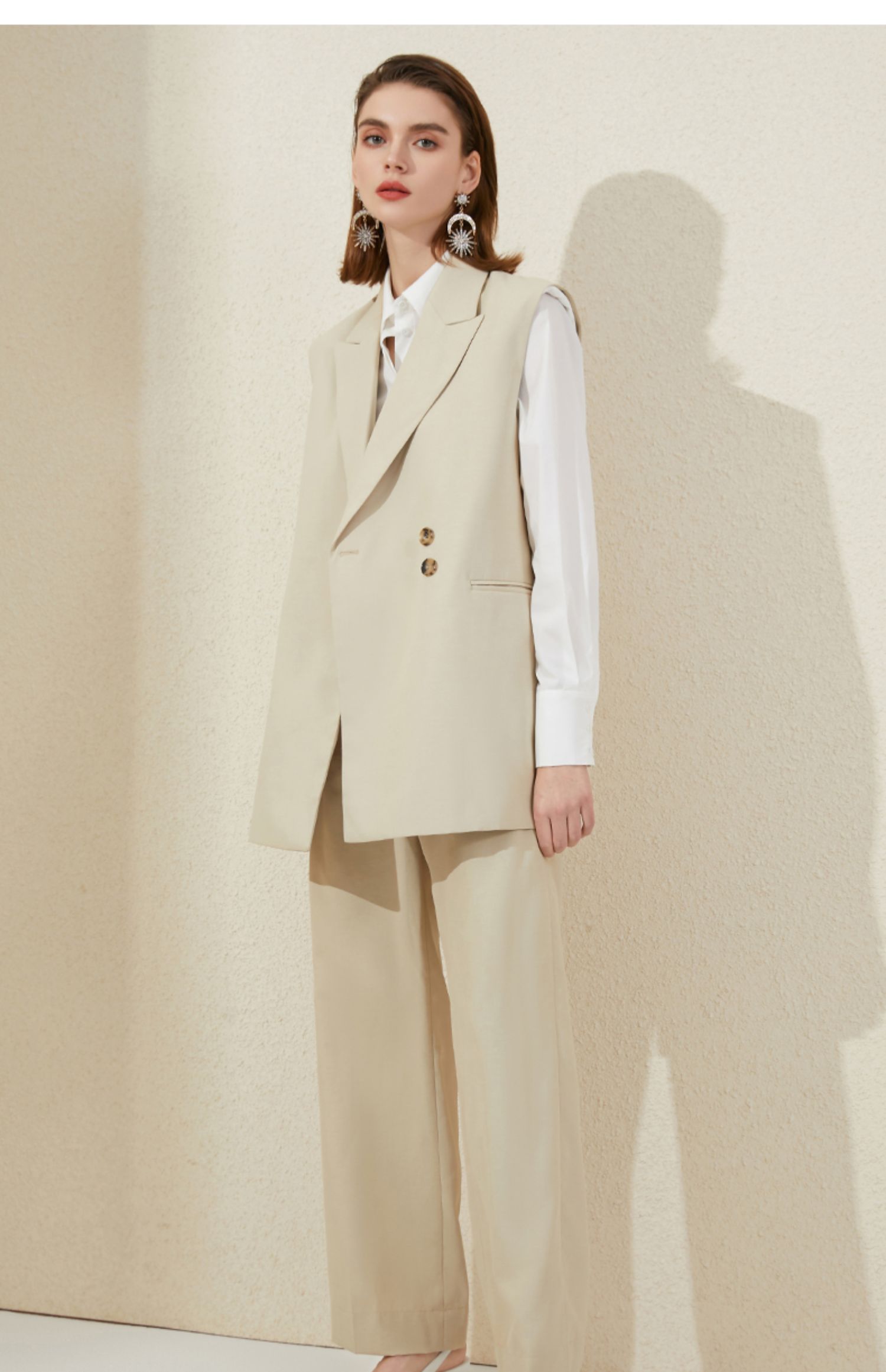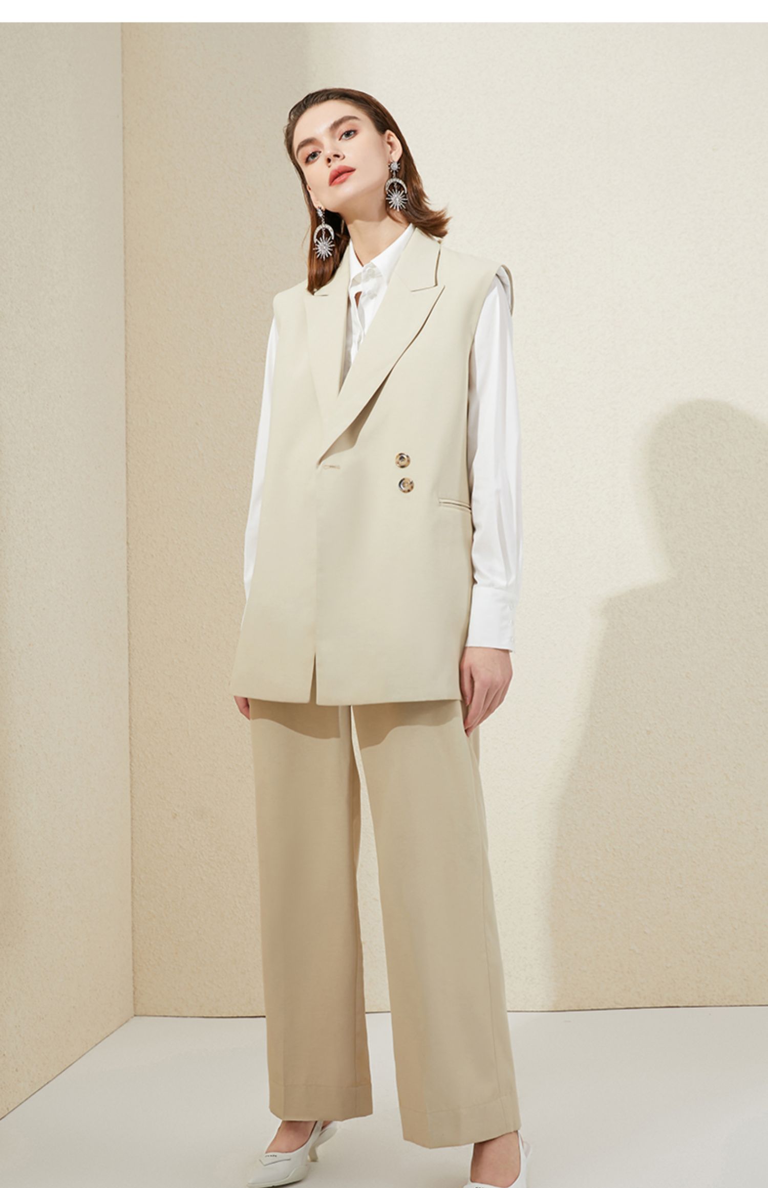 IWY/杏色时尚套装马甲阔腿裤高腰韩版宽松早职业装洋气两件套213196C6+P6