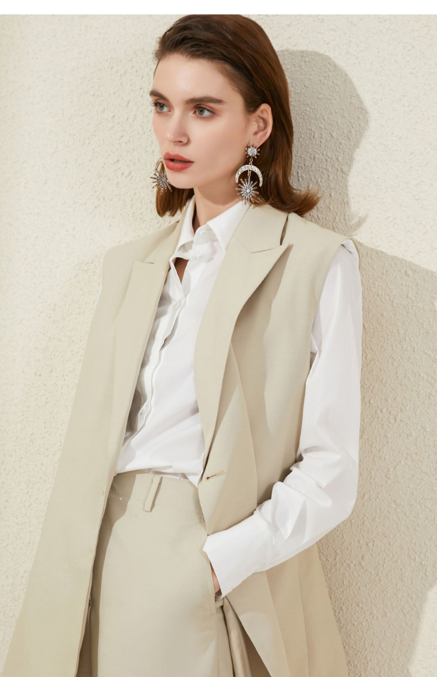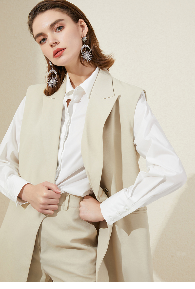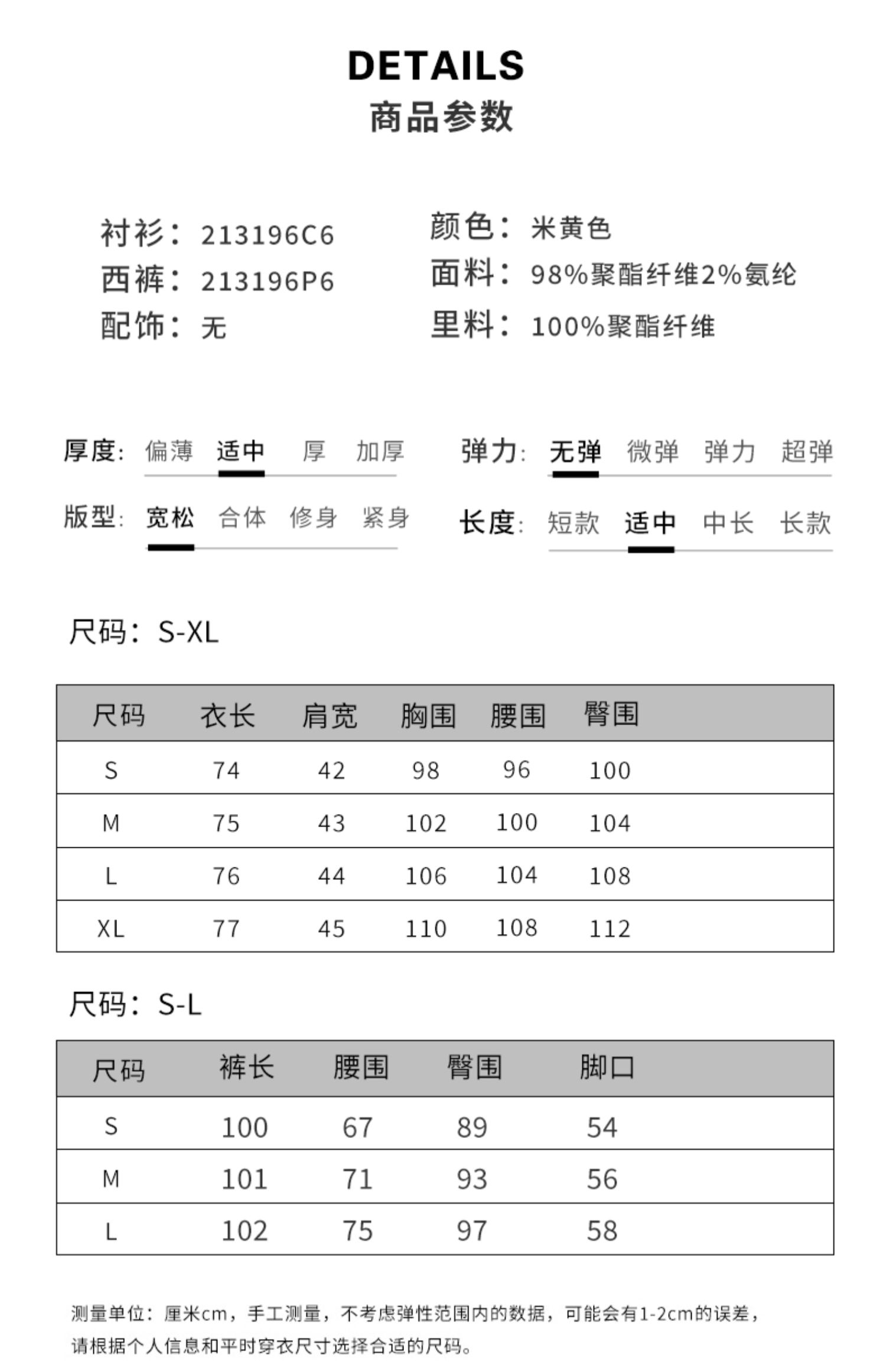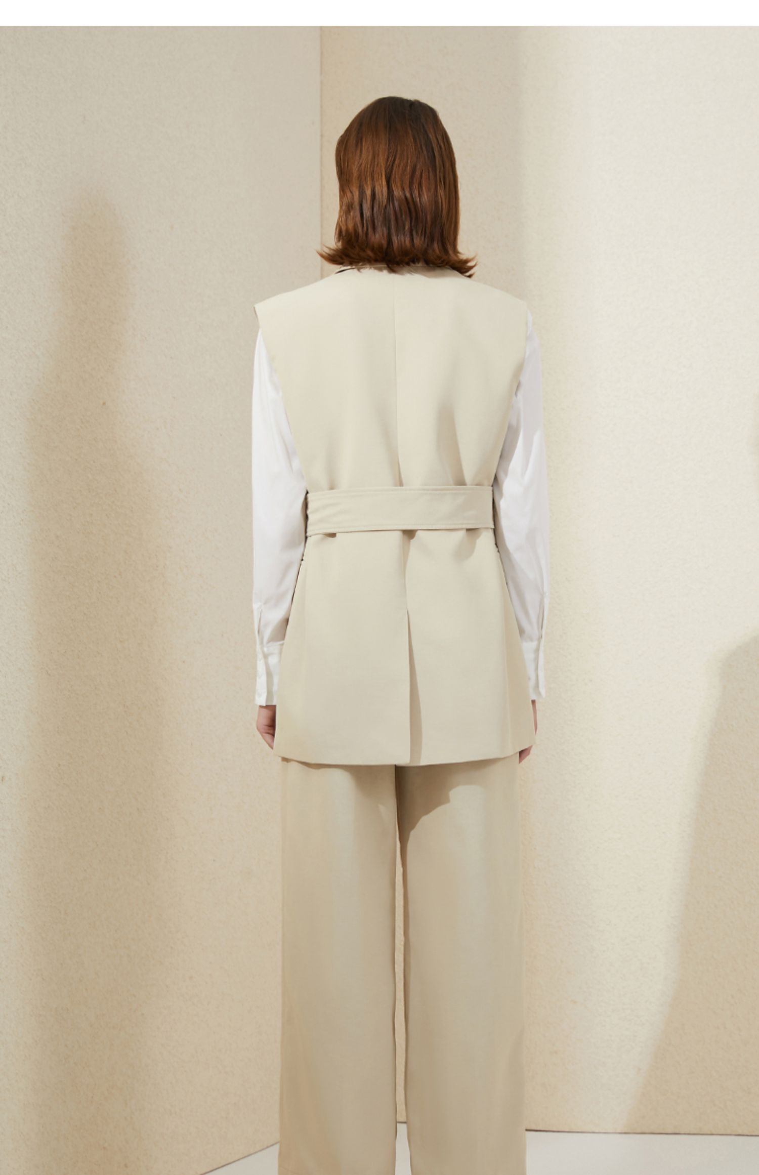 IWY/杏色时尚套装马甲阔腿裤高腰韩版宽松早职业装洋气两件套213196C6+P6