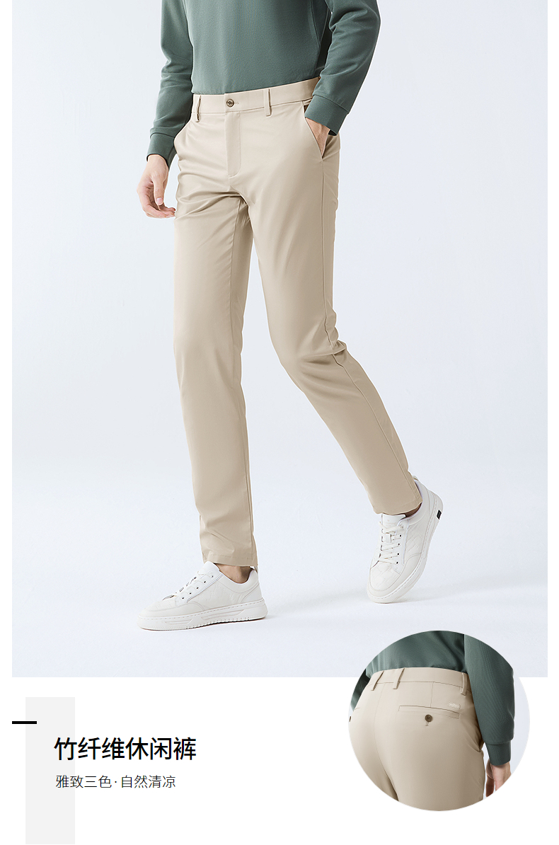 【竹纤维】柒牌休闲裤男士2025春夏新款商务简约舒适百搭直筒长裤128H70290