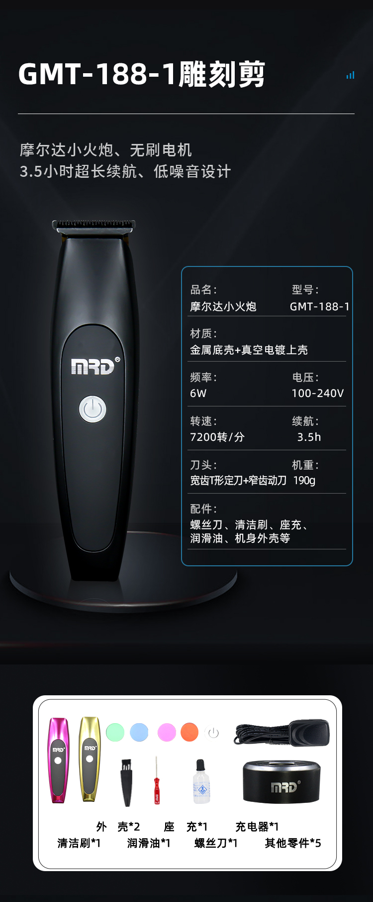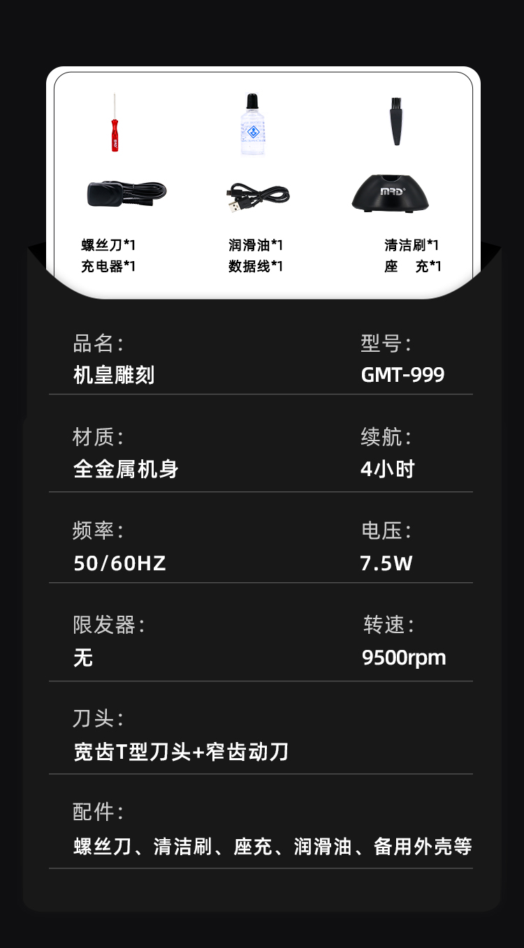 摩尔达MRD 电推发型专用理发器雕刻油头电推剪发廊家用专业电推