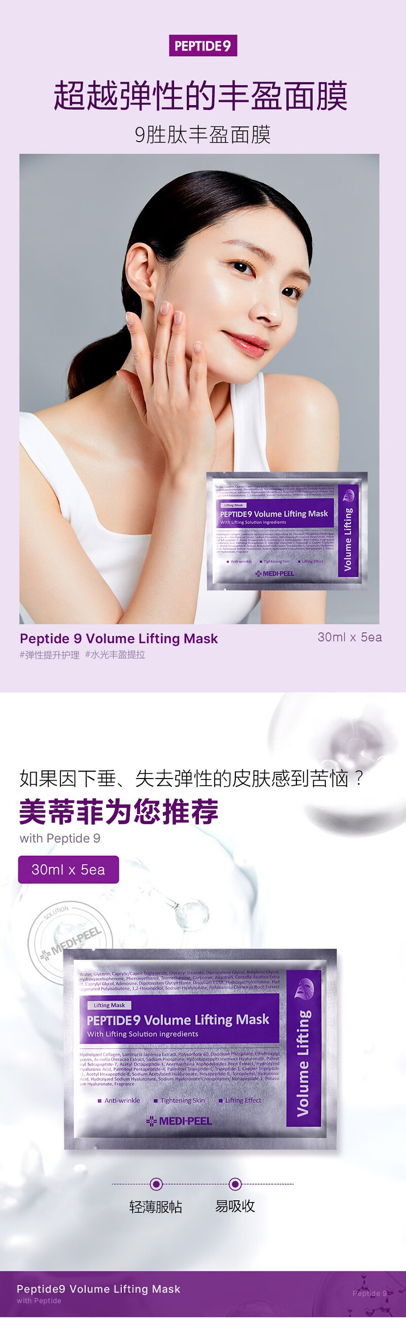 美蒂菲九肽丰盈提拉面膜25ml*5片
